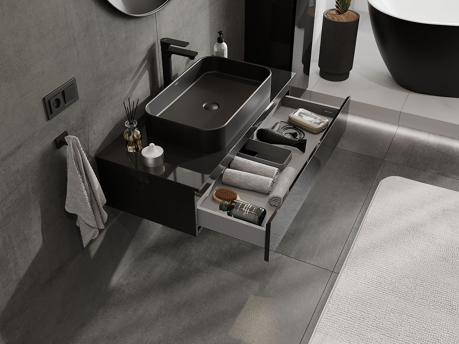 Mobilierul nostru modular pentru baie poate fi combinat în diverse configurații de culori, permițând personalizarea completă. Puteți alege atât aspectul, cât și funcțiile fiecărui element, ceea ce permite adaptarea mobilierului la preferințele dvs. stilistice și funcționale.