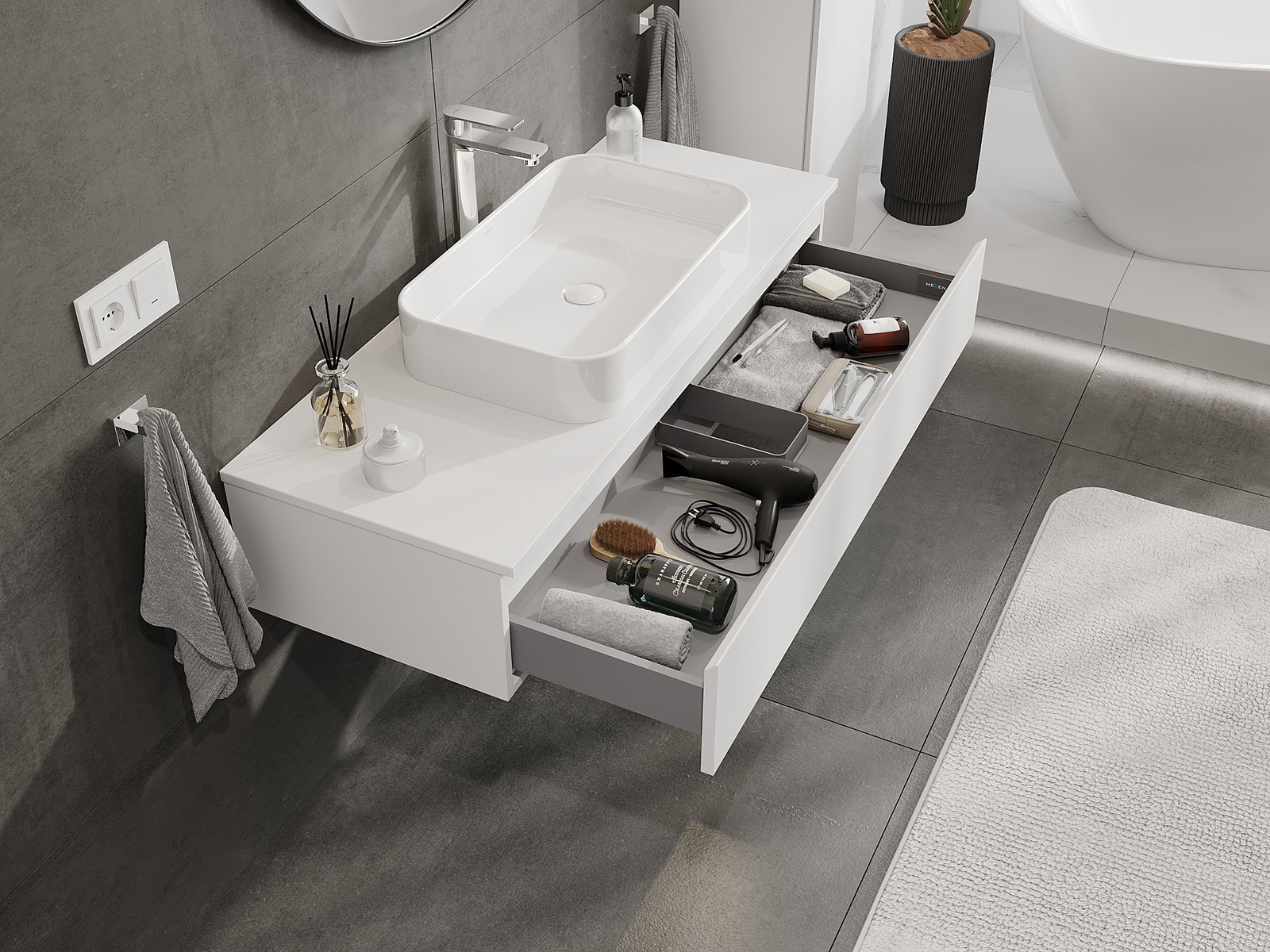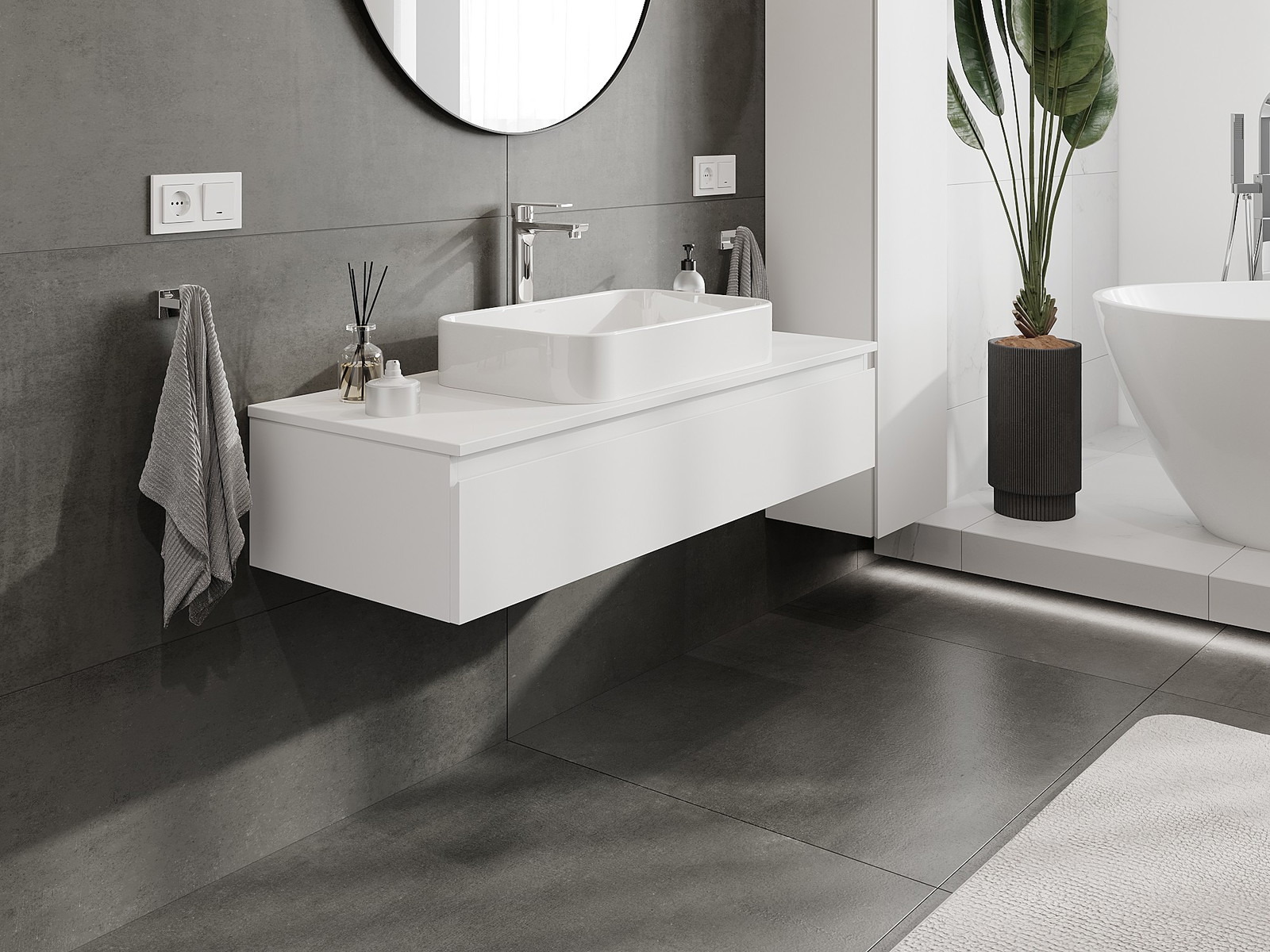 Mobilierul nostru modular pentru baie poate fi combinat în diverse configurații de culori, permițând personalizarea completă. Puteți alege atât aspectul, cât și funcțiile fiecărui element, ceea ce permite adaptarea mobilierului la preferințele dvs. stilistice și funcționale.