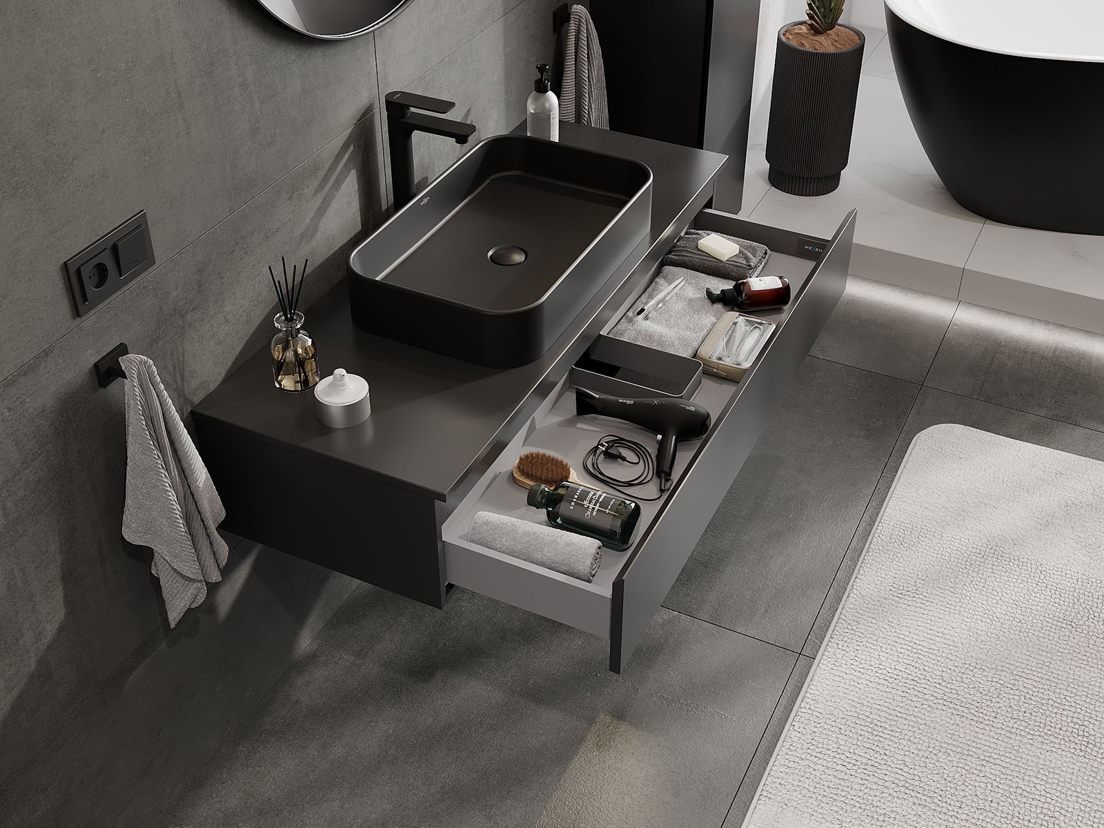 Mobilierul nostru modular pentru baie poate fi combinat în diverse configurații de culori, permițând personalizarea completă. Puteți alege atât aspectul, cât și funcțiile fiecărui element, ceea ce permite adaptarea mobilierului la preferințele dvs. stilistice și funcționale.
