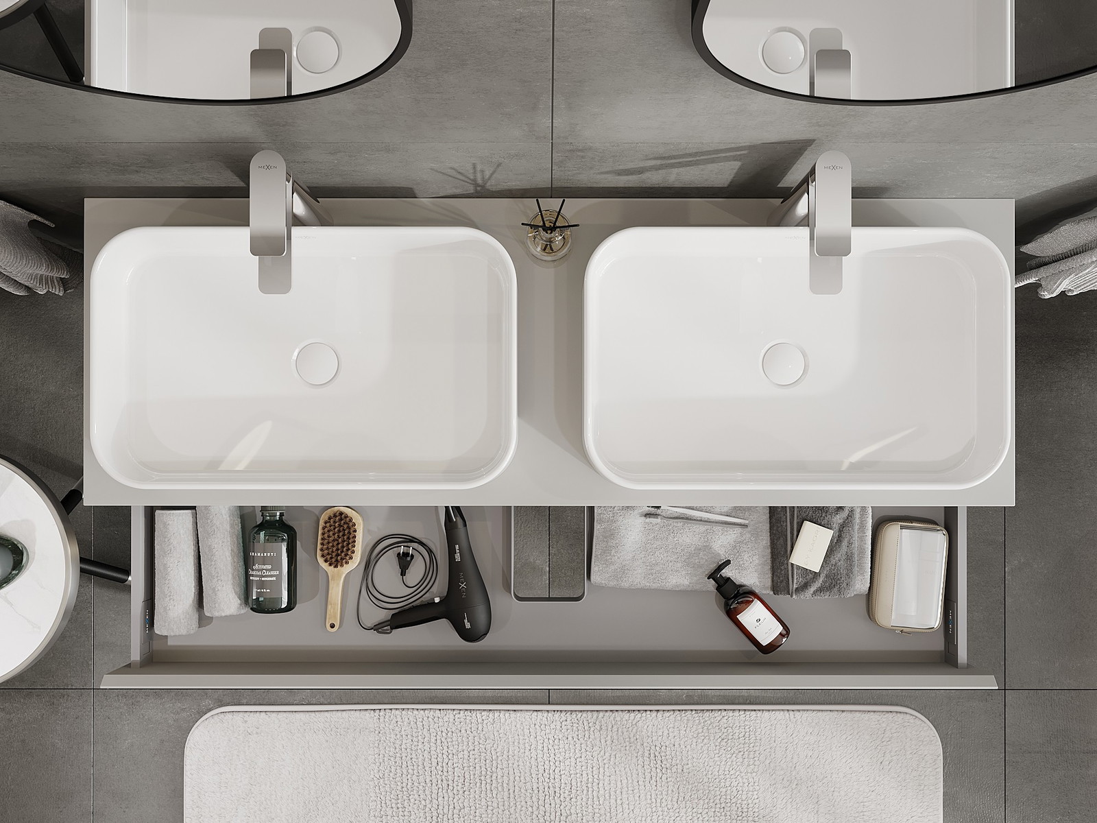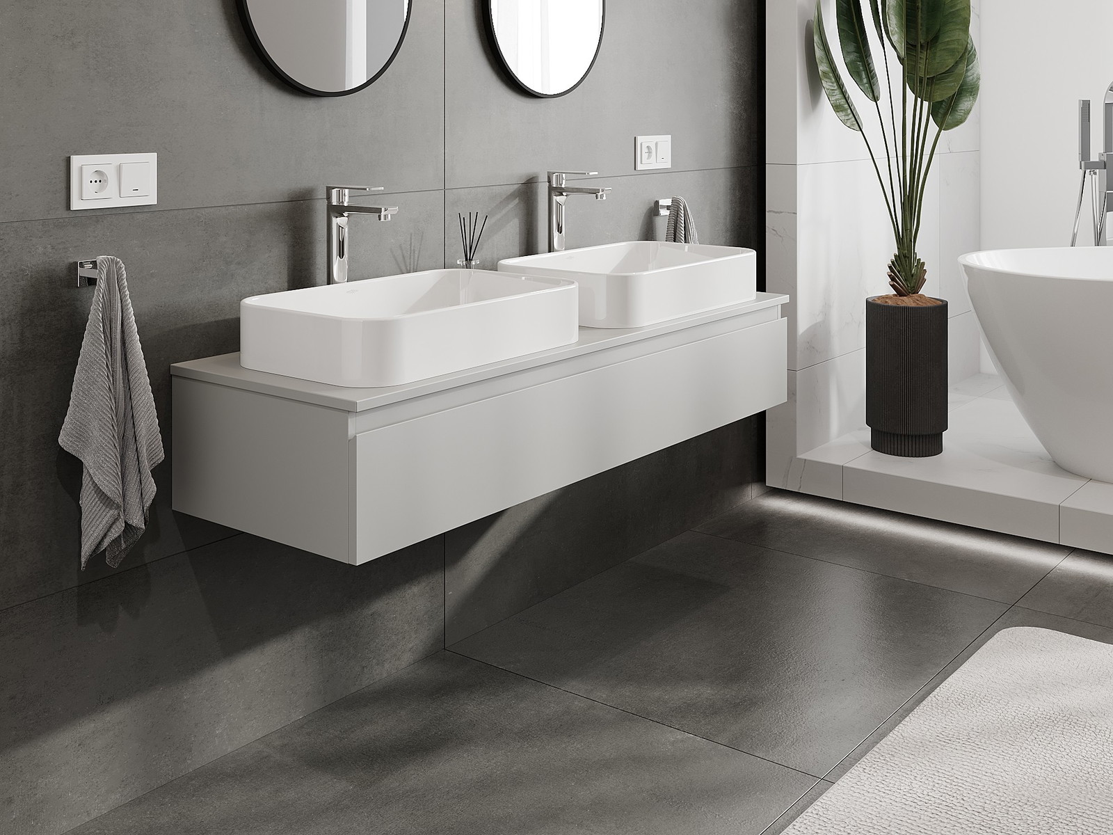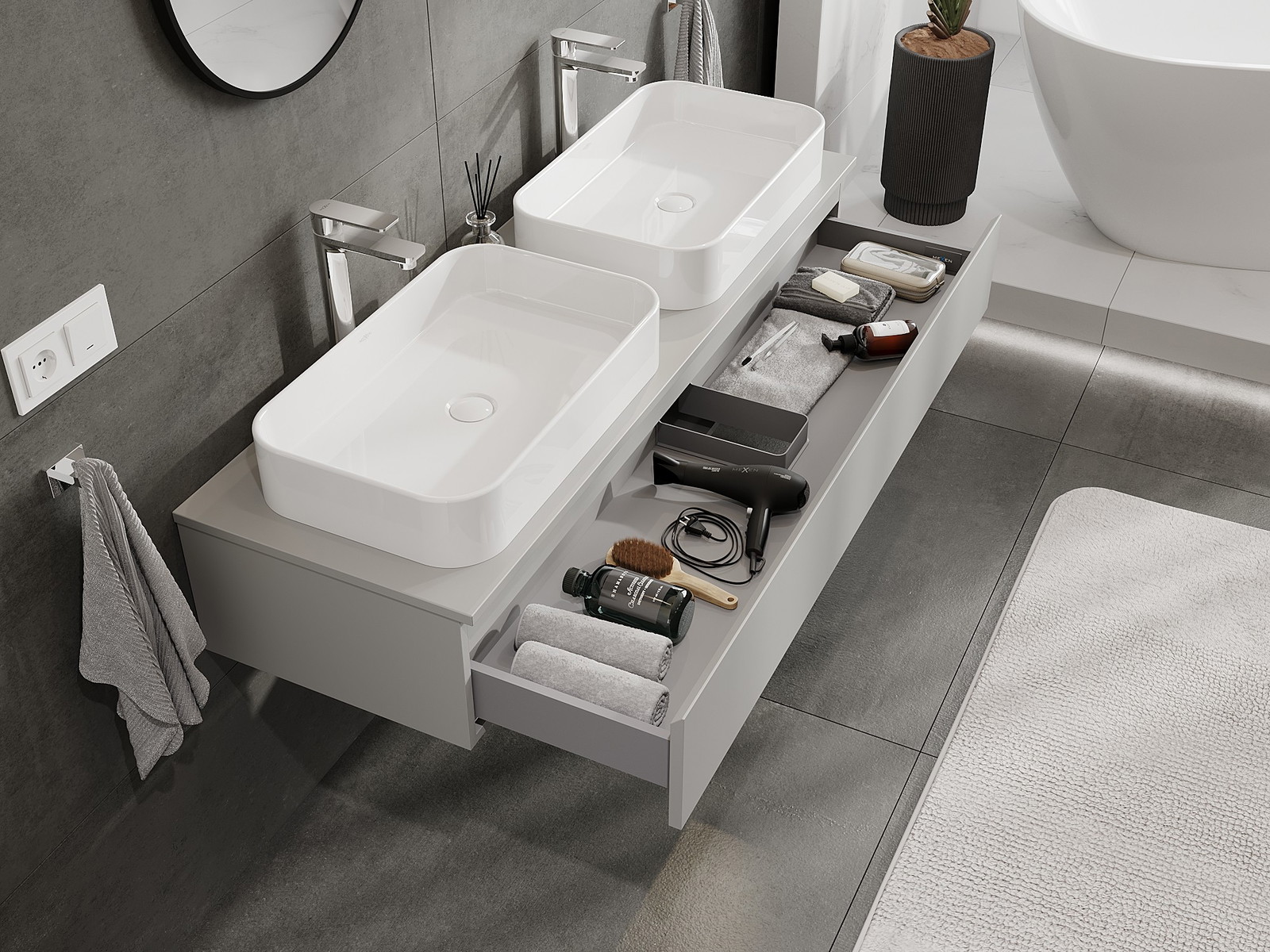 Mobilierul nostru modular pentru baie poate fi combinat în diverse configurații de culori, permițând personalizarea completă. Puteți alege atât aspectul, cât și funcțiile fiecărui element, ceea ce permite adaptarea mobilierului la preferințele dvs. stilistice și funcționale.