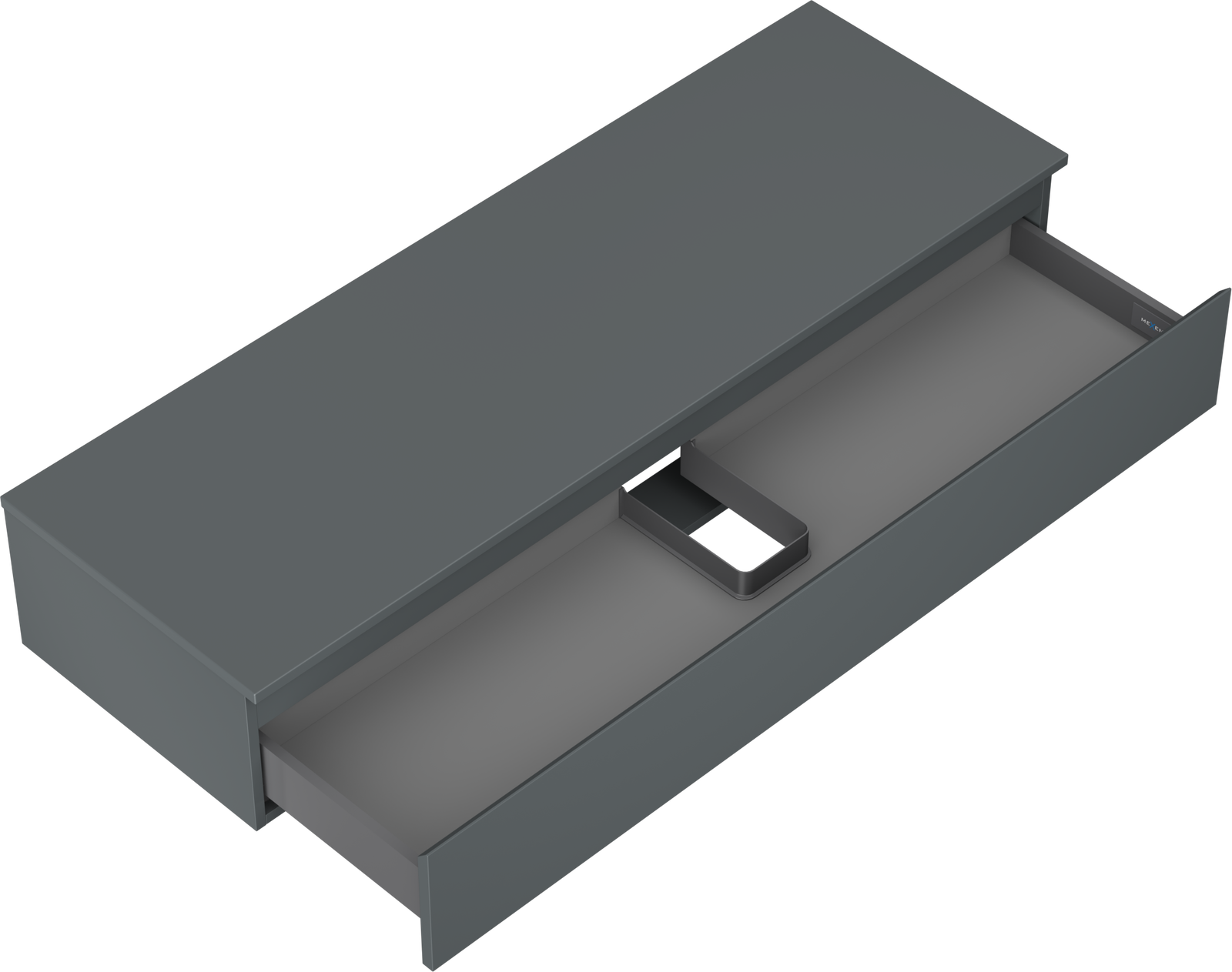Decupajul în sertar este proiectat în așa fel încât să acomodeze sifonul, care este esențial în instalațiile de lavoare. Datorită acestui fapt, mobila poate fi montată complet funcțională, fără a fi necesară renunțarea la spațiul din sertar în favoarea instalației.