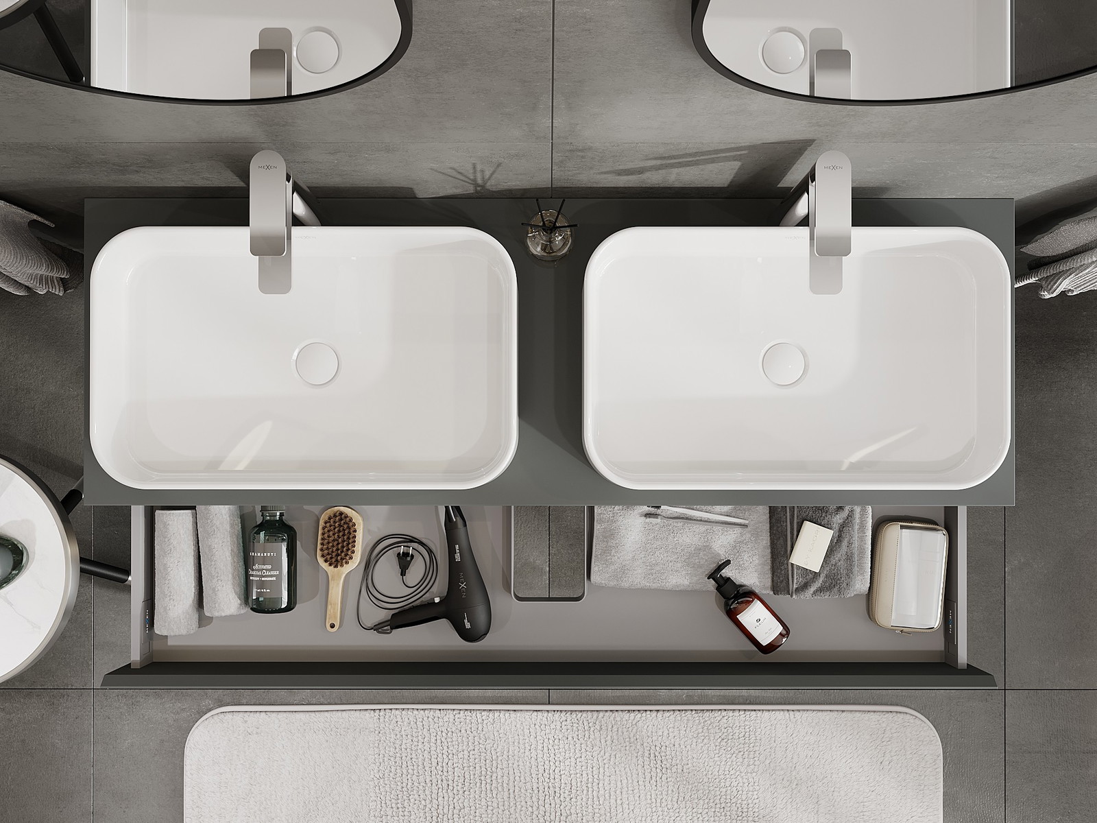Mobilierul nostru modular pentru baie poate fi combinat în diverse configurații de culori, permițând personalizarea completă. Puteți alege atât aspectul, cât și funcțiile fiecărui element, ceea ce permite adaptarea mobilierului la preferințele dvs. stilistice și funcționale.