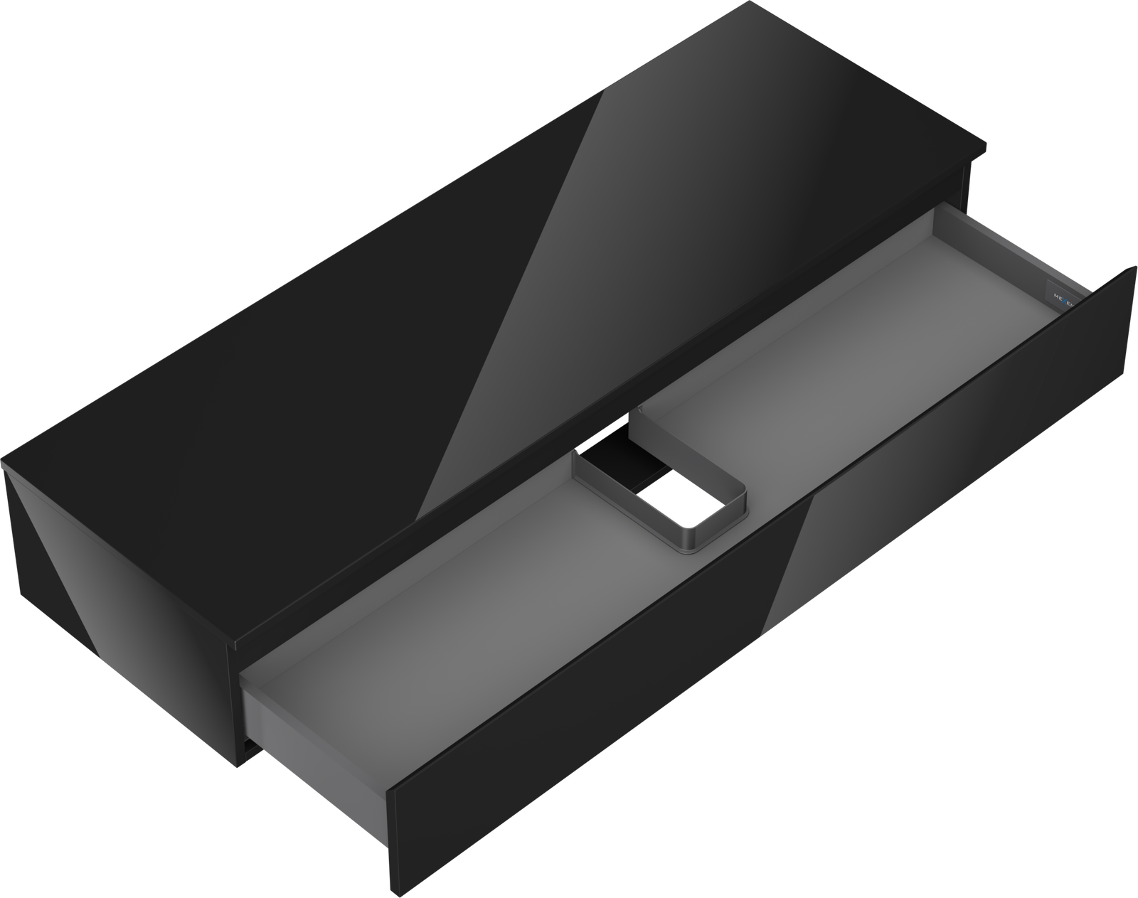 Decupajul în sertar este proiectat în așa fel încât să acomodeze sifonul, care este esențial în instalațiile de lavoare. Datorită acestui fapt, mobila poate fi montată complet funcțională, fără a fi necesară renunțarea la spațiul din sertar în favoarea instalației.