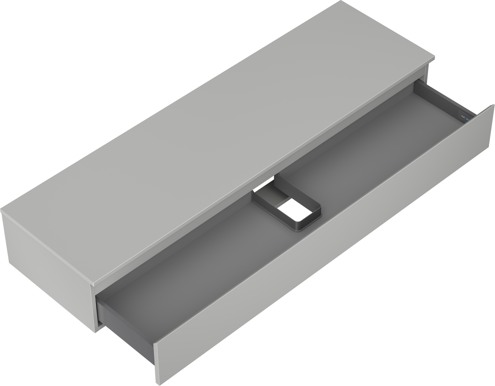 Decupajul în sertar este proiectat în așa fel încât să acomodeze sifonul, care este esențial în instalațiile de lavoare. Datorită acestui fapt, mobila poate fi montată complet funcțională, fără a fi necesară renunțarea la spațiul din sertar în favoarea instalației.