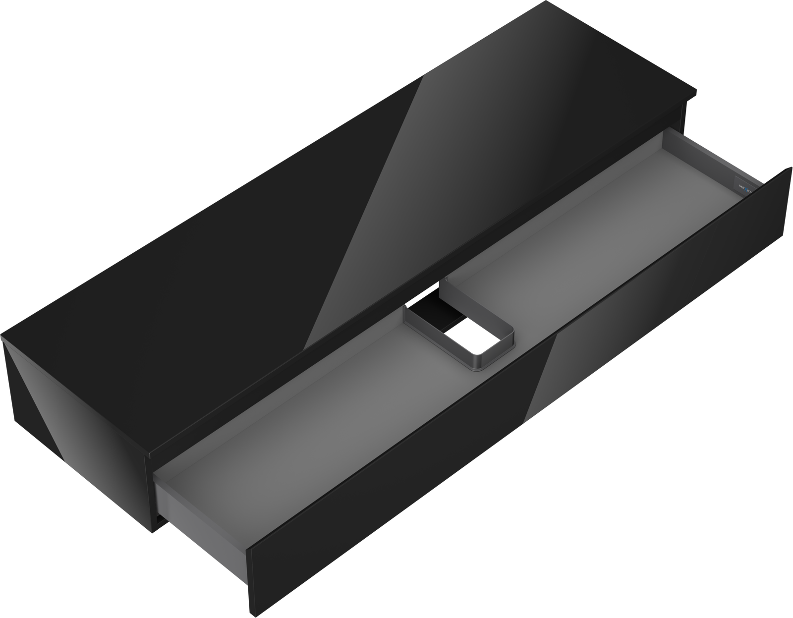 Decupajul în sertar este proiectat în așa fel încât să acomodeze sifonul, care este esențial în instalațiile de lavoare. Datorită acestui fapt, mobila poate fi montată complet funcțională, fără a fi necesară renunțarea la spațiul din sertar în favoarea instalației.
