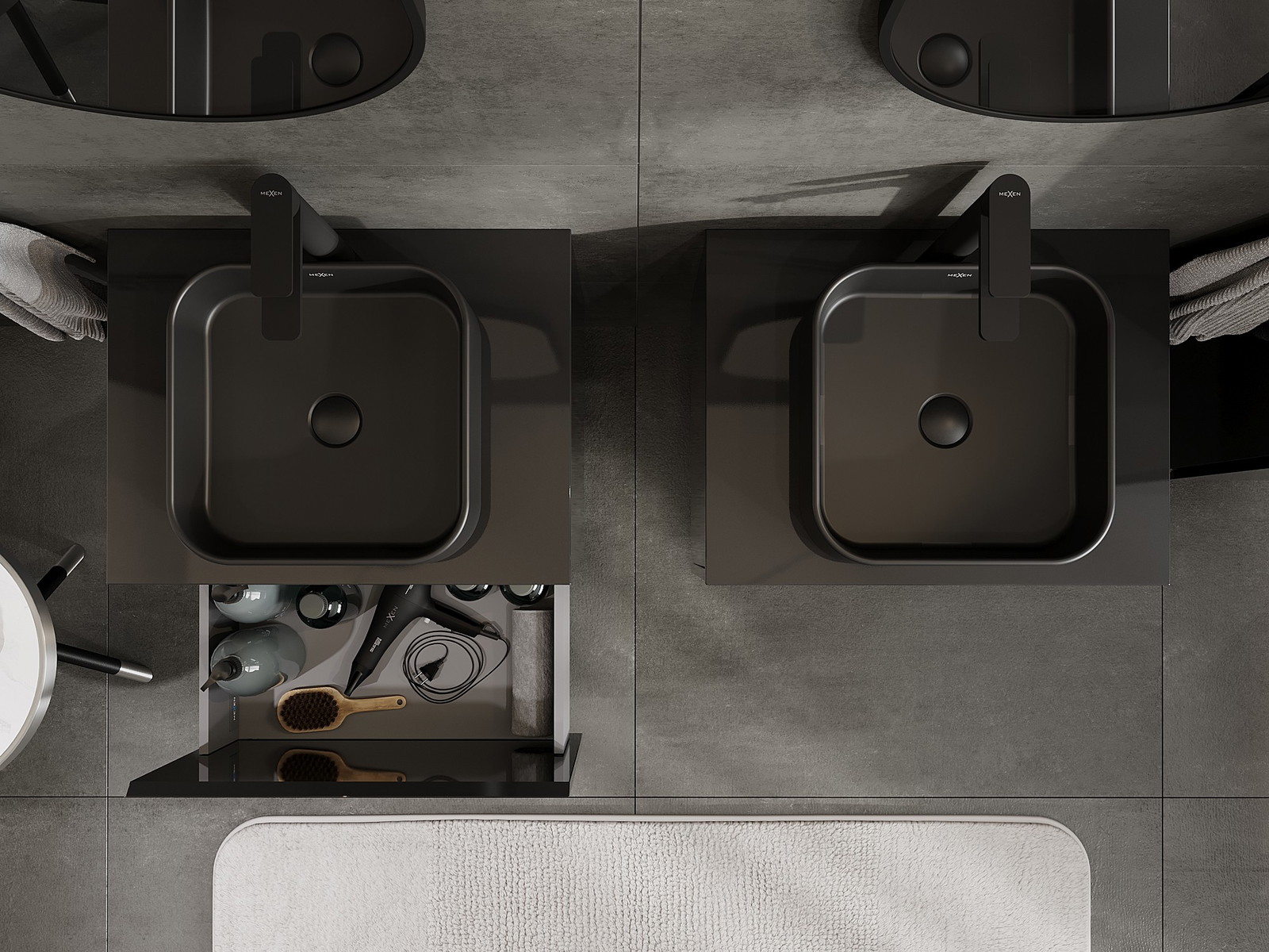 Mexen Orio dulap de baie sub lavoar 60 cm cu blat, 1 sertar, negru lucios - 91A10-06047-1-BFC70