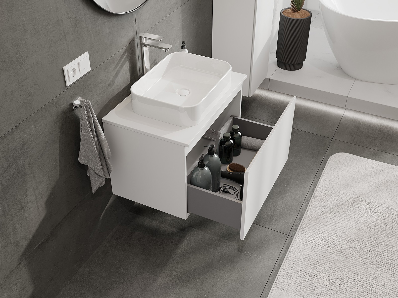 Corpul dulapului este livrat complet asamblat, ceea ce înseamnă confort maxim și economie de timp. Nu trebuie să pierzi ore întregi asamblând mobilierul – este suficient să îl montezi în locul ales din baie. Aceasta este soluția ideală pentru persoanele care prețuiesc montajul rapid și efectul imediat.