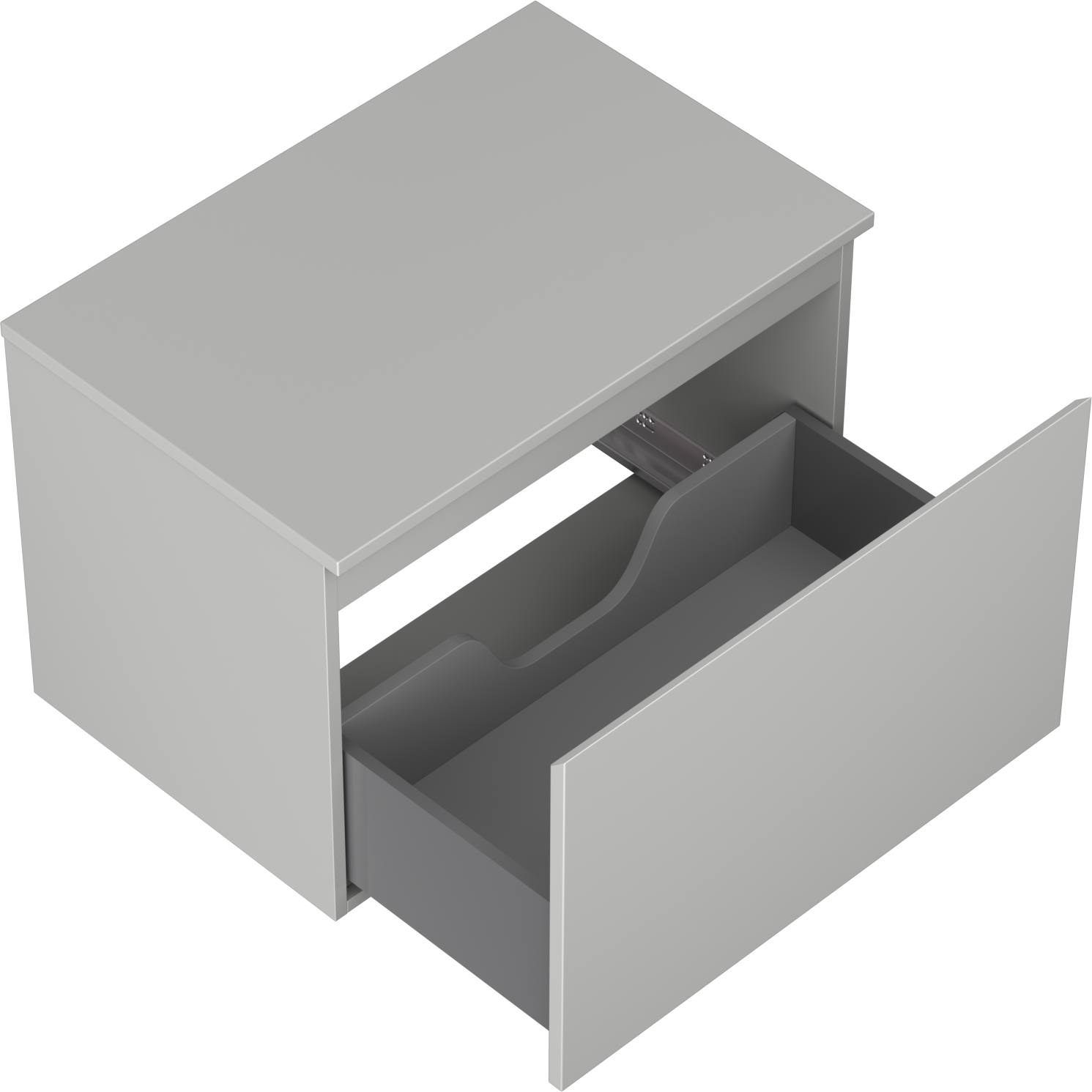 Decupajul în sertar este proiectat în așa fel încât să acomodeze sifonul, care este esențial în instalațiile de lavoare. Datorită acestui fapt, mobila poate fi montată complet funcțională, fără a fi necesară renunțarea la spațiul din sertar în favoarea instalației.