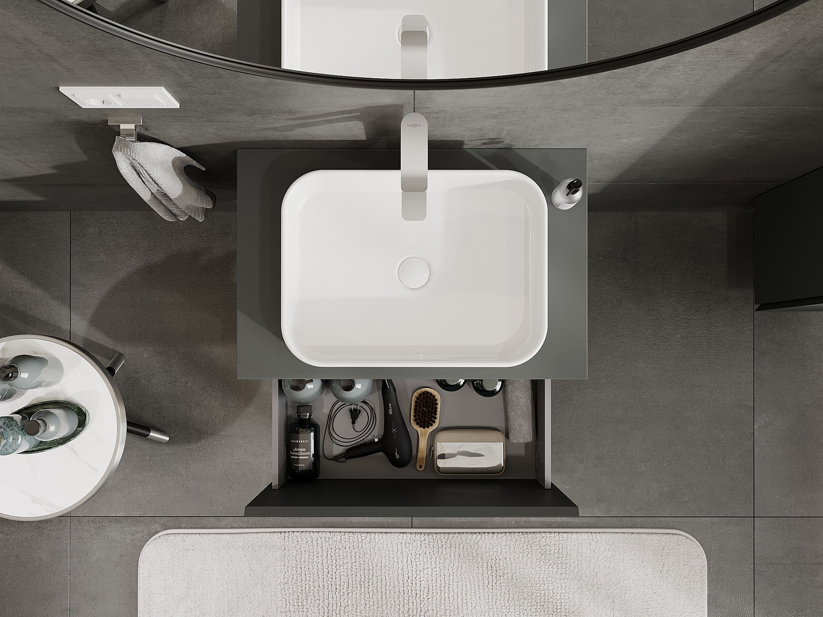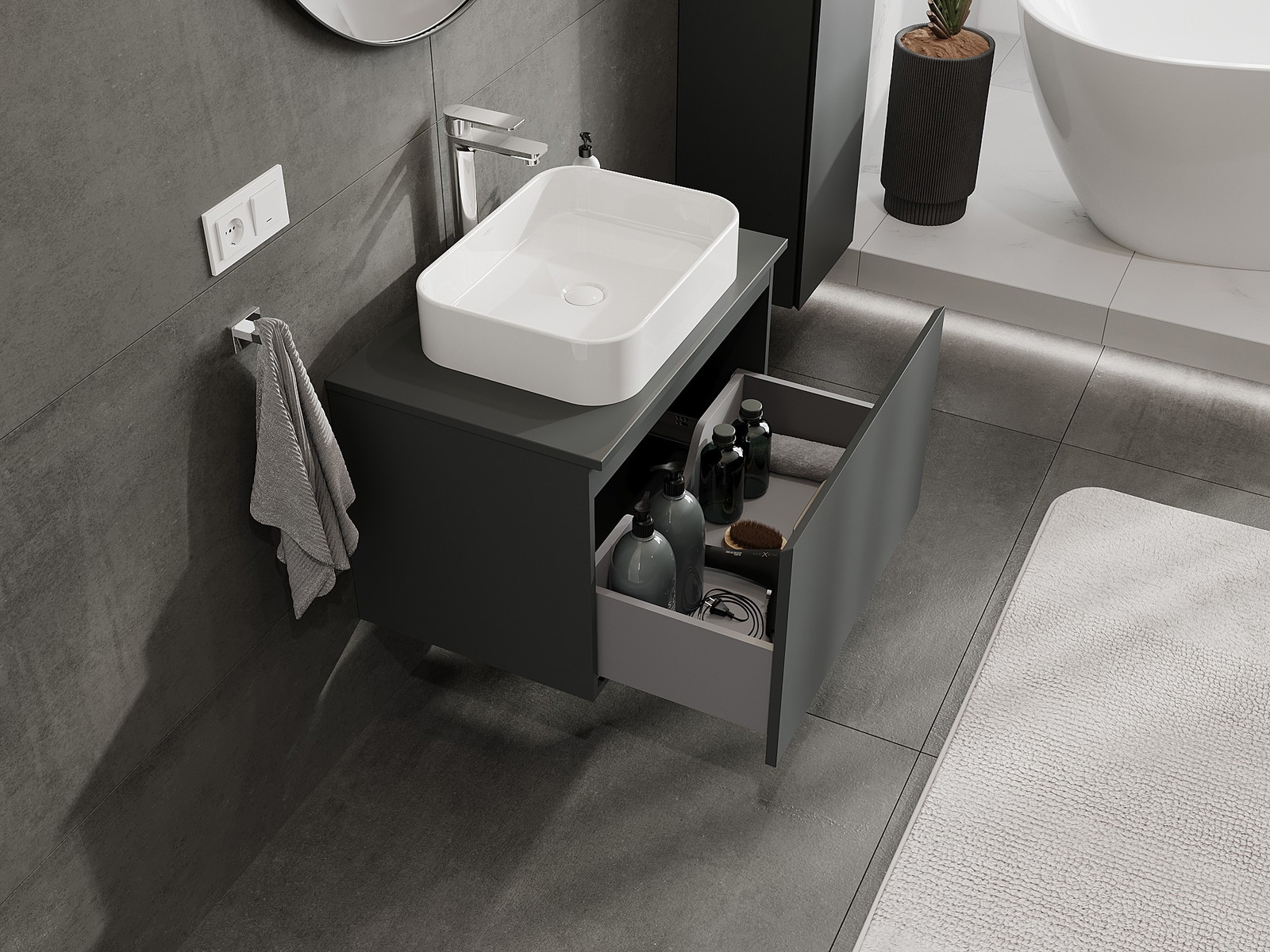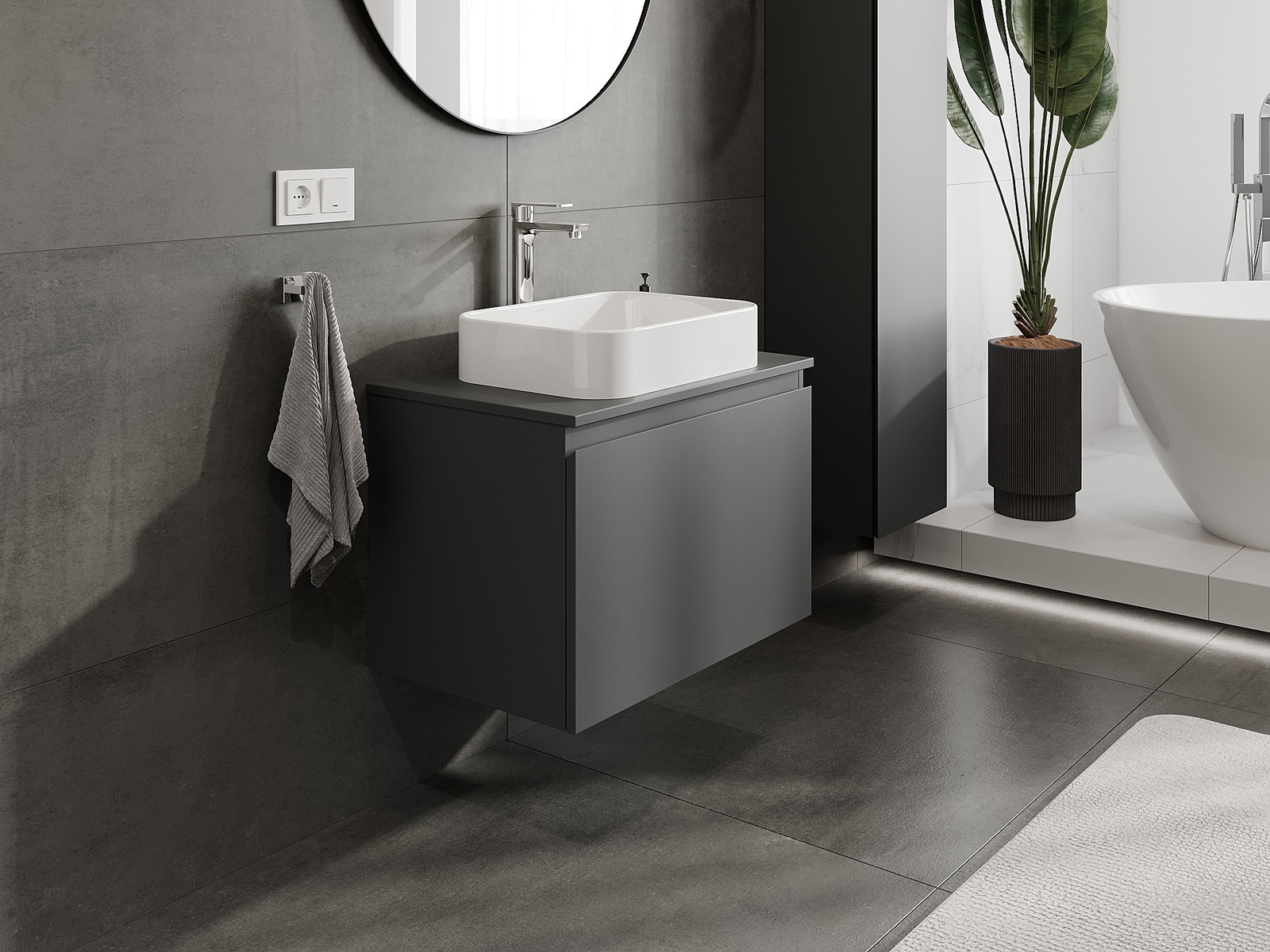 Mobilierul nostru modular pentru baie poate fi combinat în diverse configurații de culori, permițând personalizarea completă. Puteți alege atât aspectul, cât și funcțiile fiecărui element, ceea ce permite adaptarea mobilierului la preferințele dvs. stilistice și funcționale.