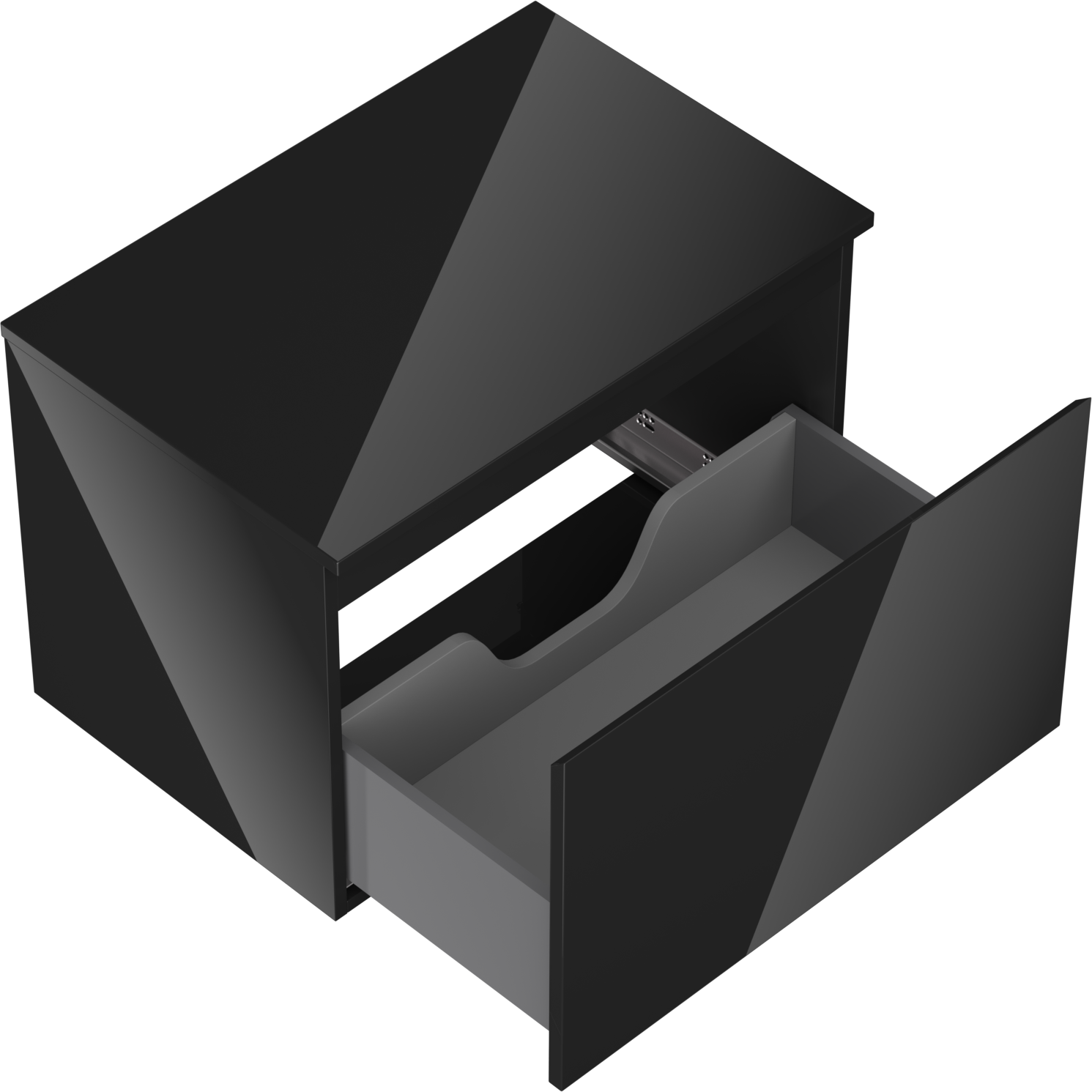 Decupajul în sertar este proiectat în așa fel încât să acomodeze sifonul, care este esențial în instalațiile de lavoare. Datorită acestui fapt, mobila poate fi montată complet funcțională, fără a fi necesară renunțarea la spațiul din sertar în favoarea instalației.