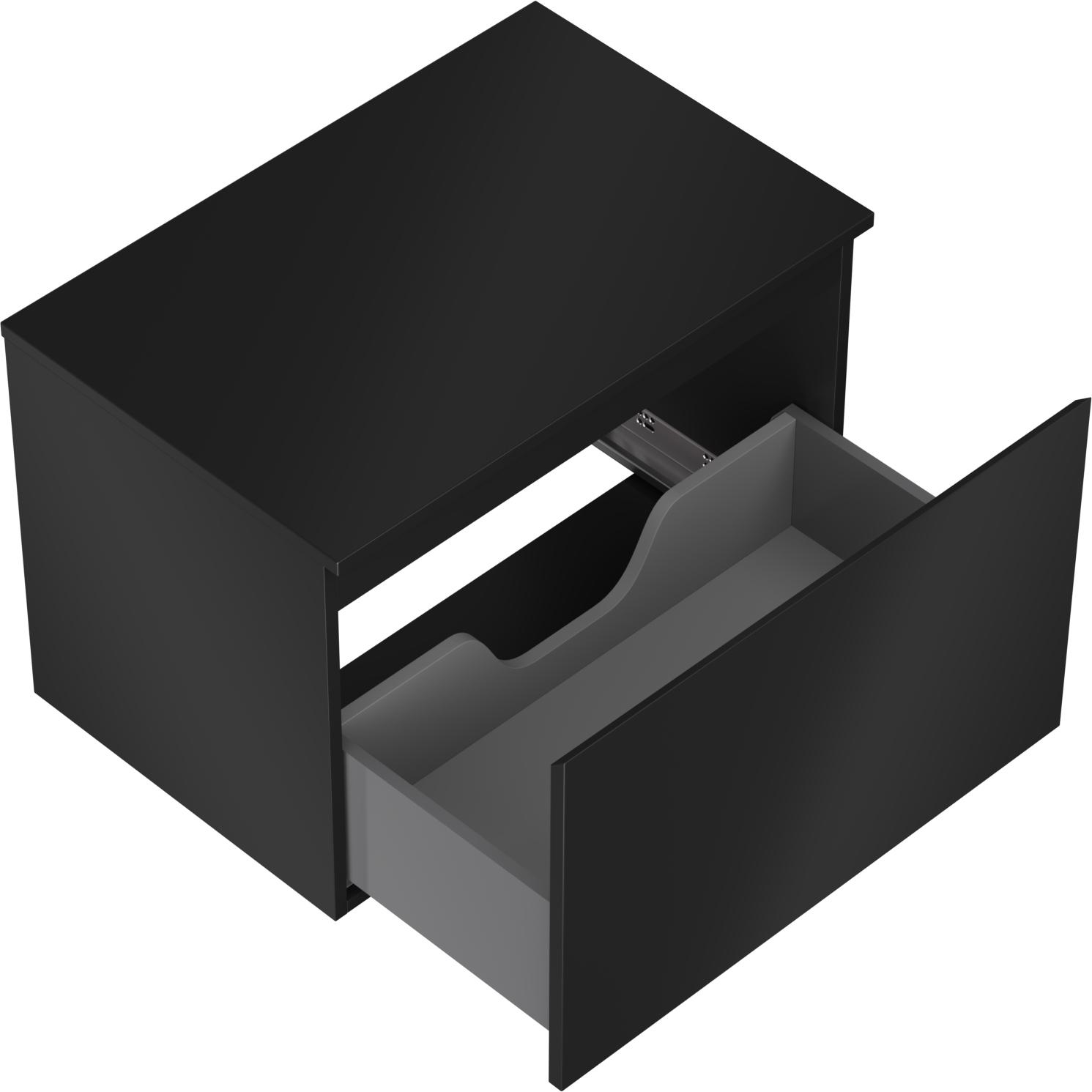 Decupajul în sertar este proiectat în așa fel încât să acomodeze sifonul, care este esențial în instalațiile de lavoare. Datorită acestui fapt, mobila poate fi montată complet funcțională, fără a fi necesară renunțarea la spațiul din sertar în favoarea instalației.