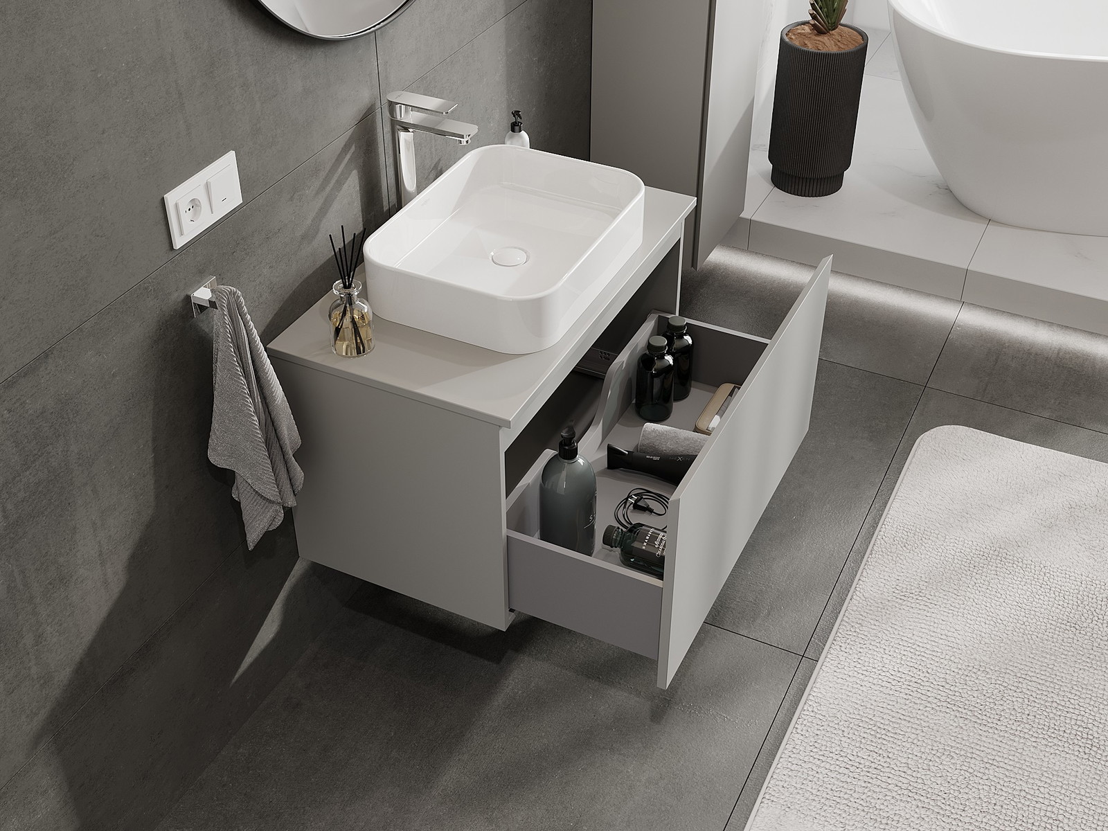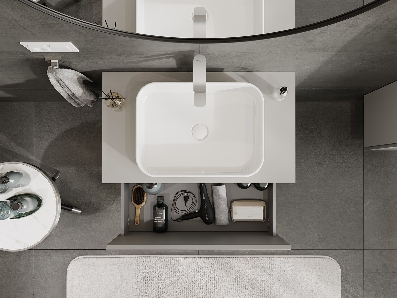 Mobilierul nostru modular pentru baie poate fi combinat în diverse configurații de culori, permițând personalizarea completă. Puteți alege atât aspectul, cât și funcțiile fiecărui element, ceea ce permite adaptarea mobilierului la preferințele dvs. stilistice și funcționale.