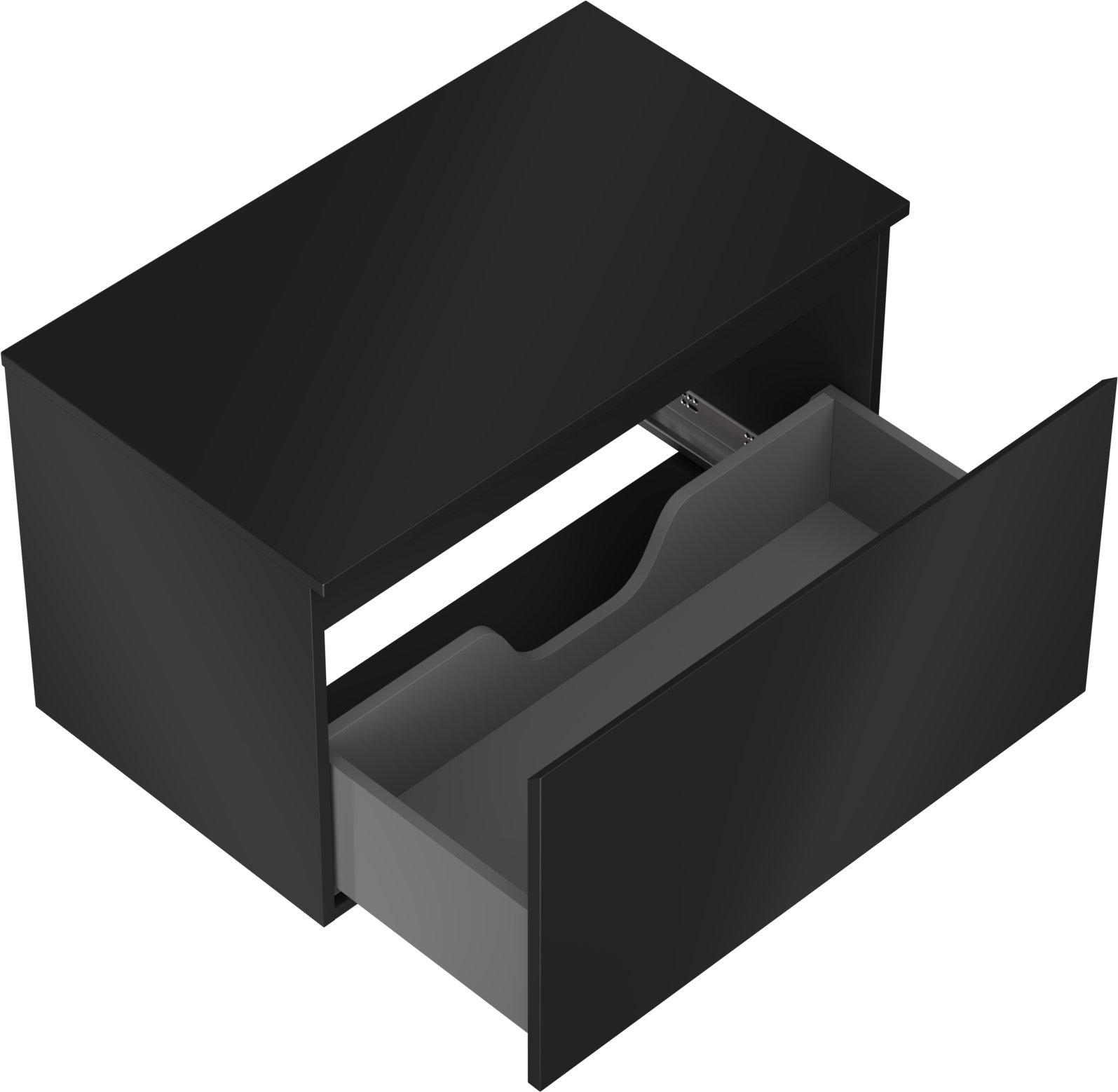 Decupajul în sertar este proiectat în așa fel încât să acomodeze sifonul, care este esențial în instalațiile de lavoare. Datorită acestui fapt, mobila poate fi montată complet funcțională, fără a fi necesară renunțarea la spațiul din sertar în favoarea instalației.