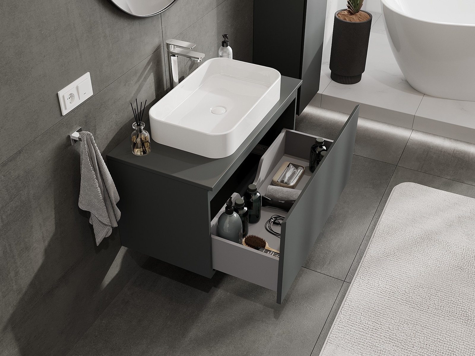 Mobilierul nostru modular pentru baie poate fi combinat în diverse configurații de culori, permițând personalizarea completă. Puteți alege atât aspectul, cât și funcțiile fiecărui element, ceea ce permite adaptarea mobilierului la preferințele dvs. stilistice și funcționale.