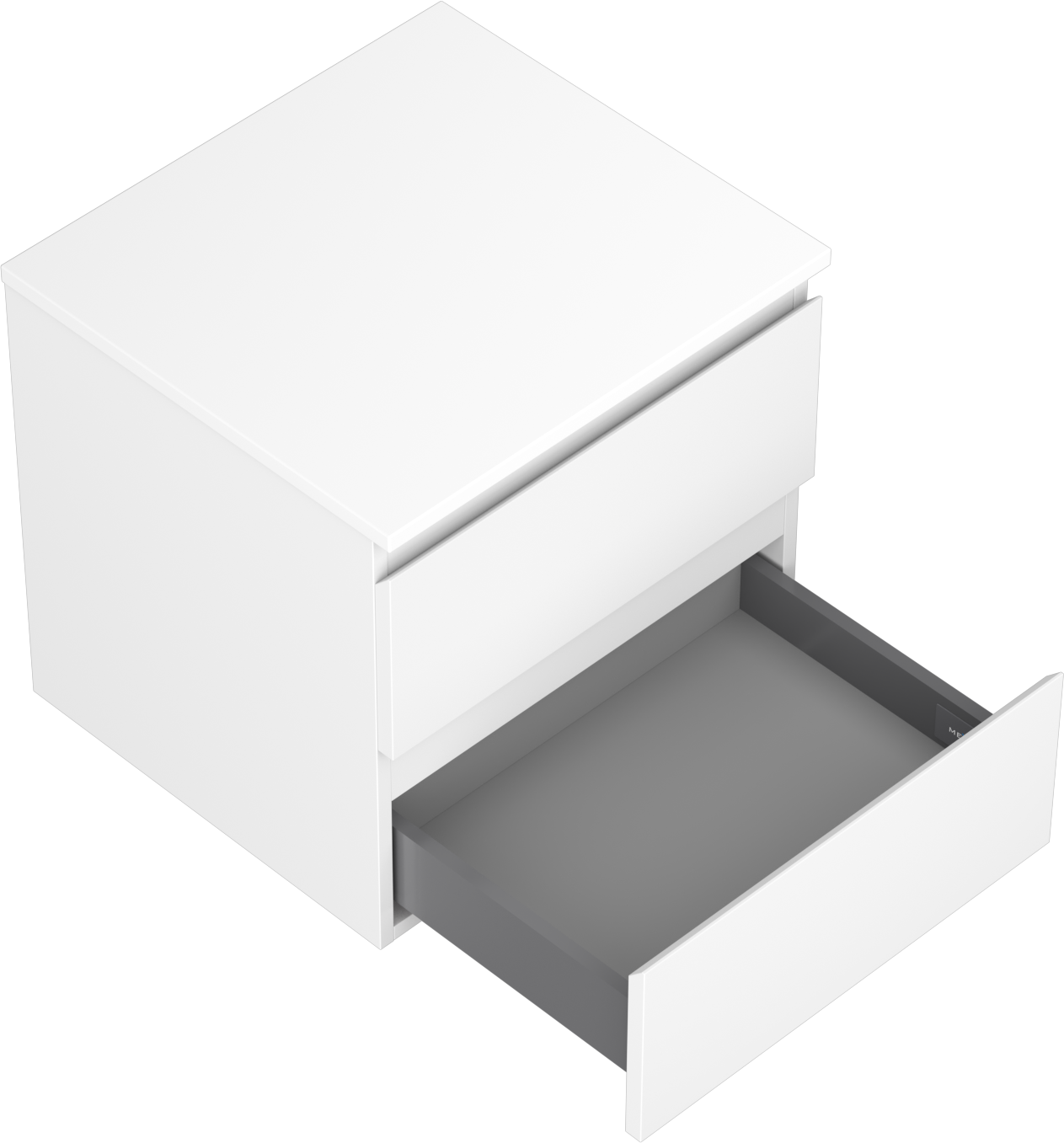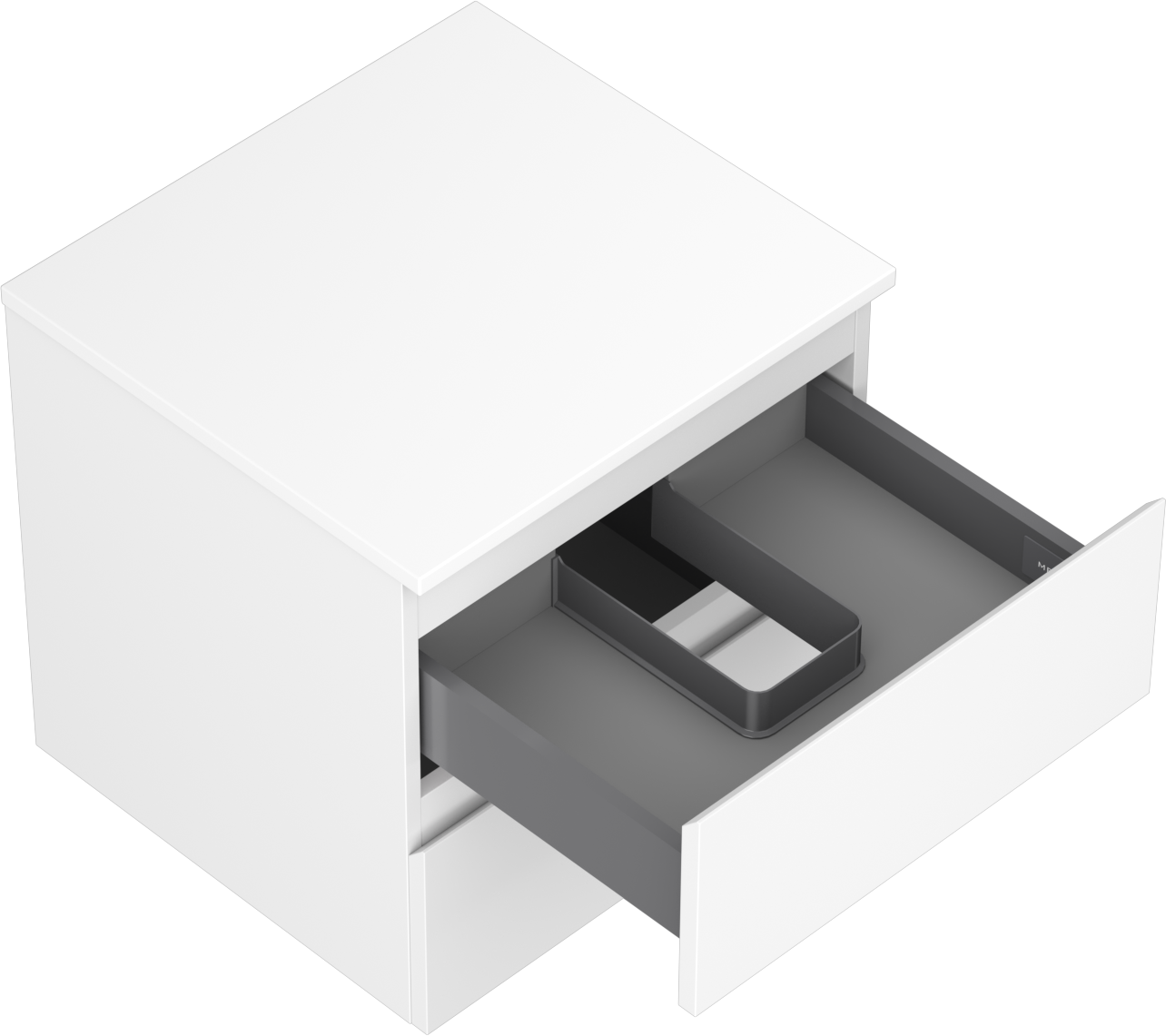 Decupajul în sertar este proiectat în așa fel încât să acomodeze sifonul, care este esențial în instalațiile de lavoare. Datorită acestui fapt, mobila poate fi montată complet funcțională, fără a fi necesară renunțarea la spațiul din sertar în favoarea instalației.
