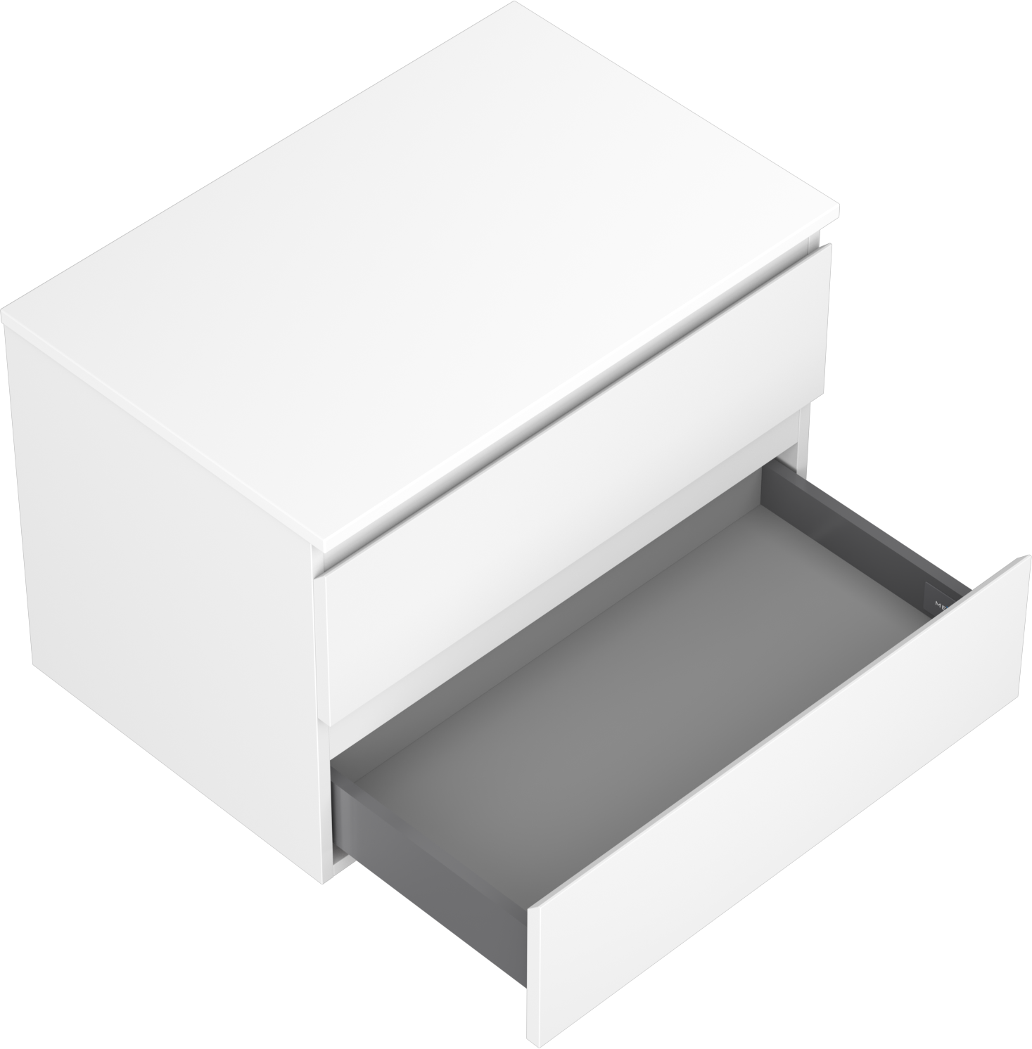Decupajul în sertar este proiectat în așa fel încât să acomodeze sifonul, care este esențial în instalațiile de lavoare. Datorită acestui fapt, mobila poate fi montată complet funcțională, fără a fi necesară renunțarea la spațiul din sertar în favoarea instalației.