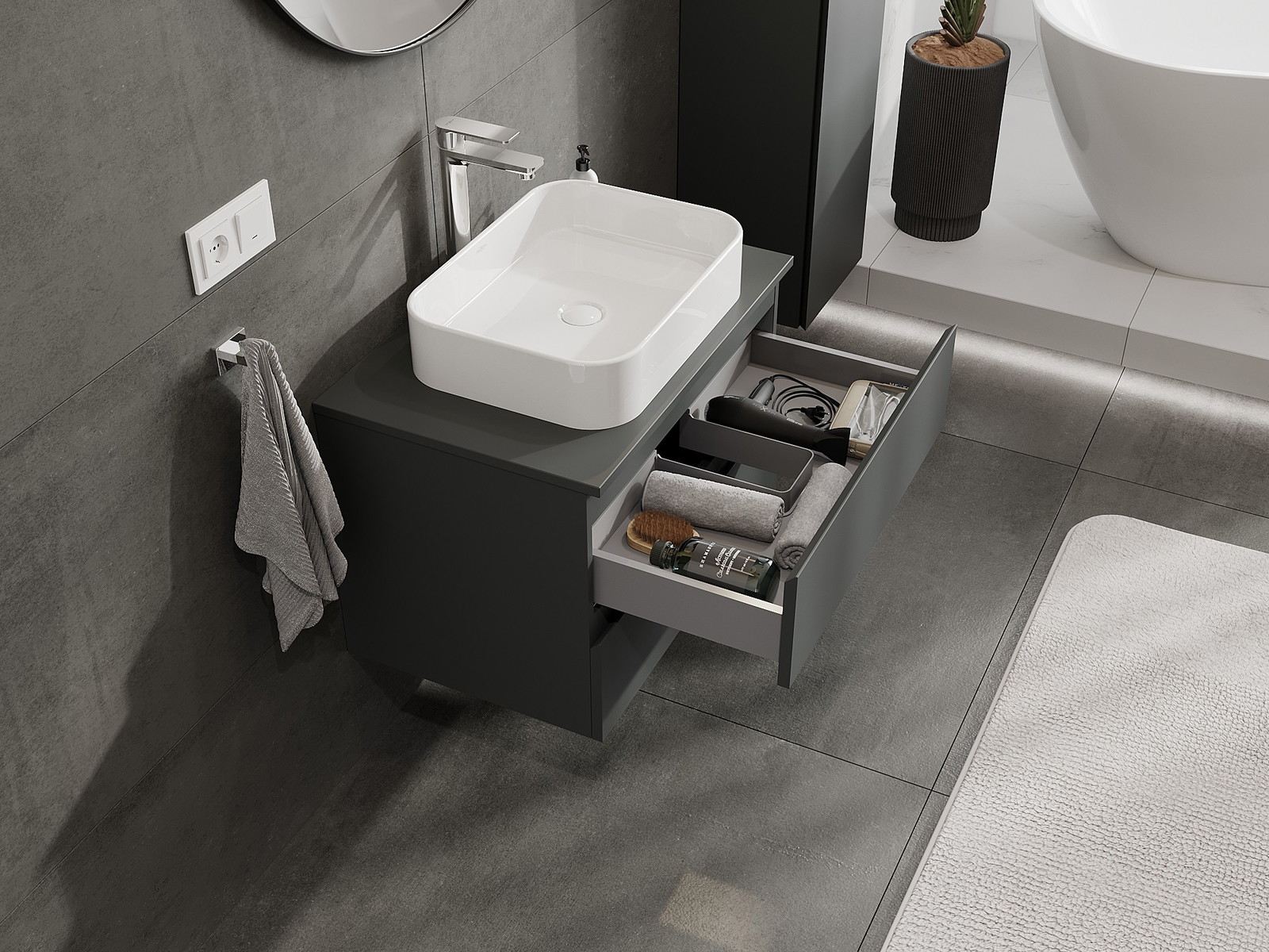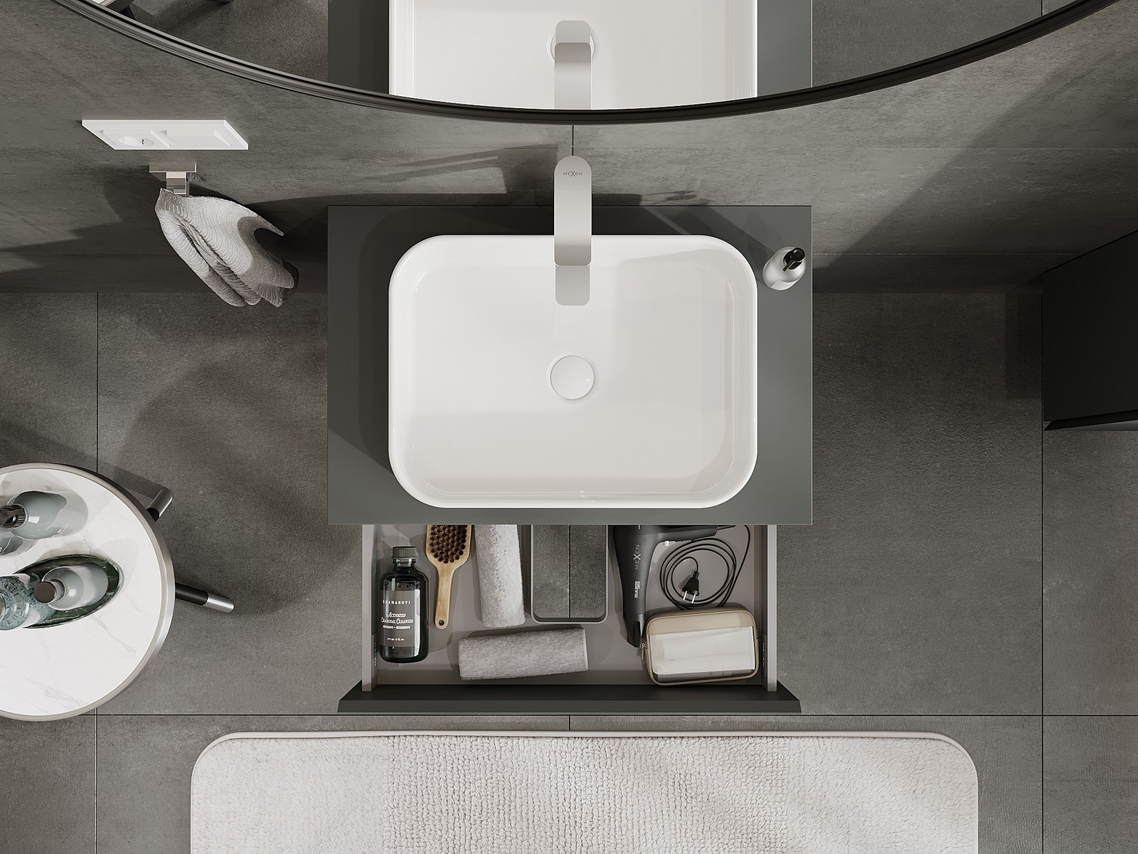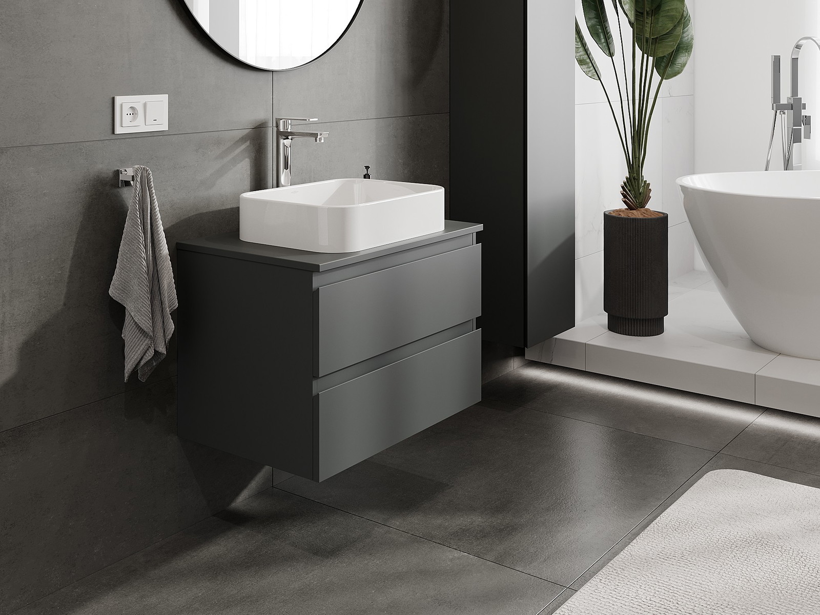 Mobilierul nostru modular pentru baie poate fi combinat în diverse configurații de culori, permițând personalizarea completă. Puteți alege atât aspectul, cât și funcțiile fiecărui element, ceea ce permite adaptarea mobilierului la preferințele dvs. stilistice și funcționale.