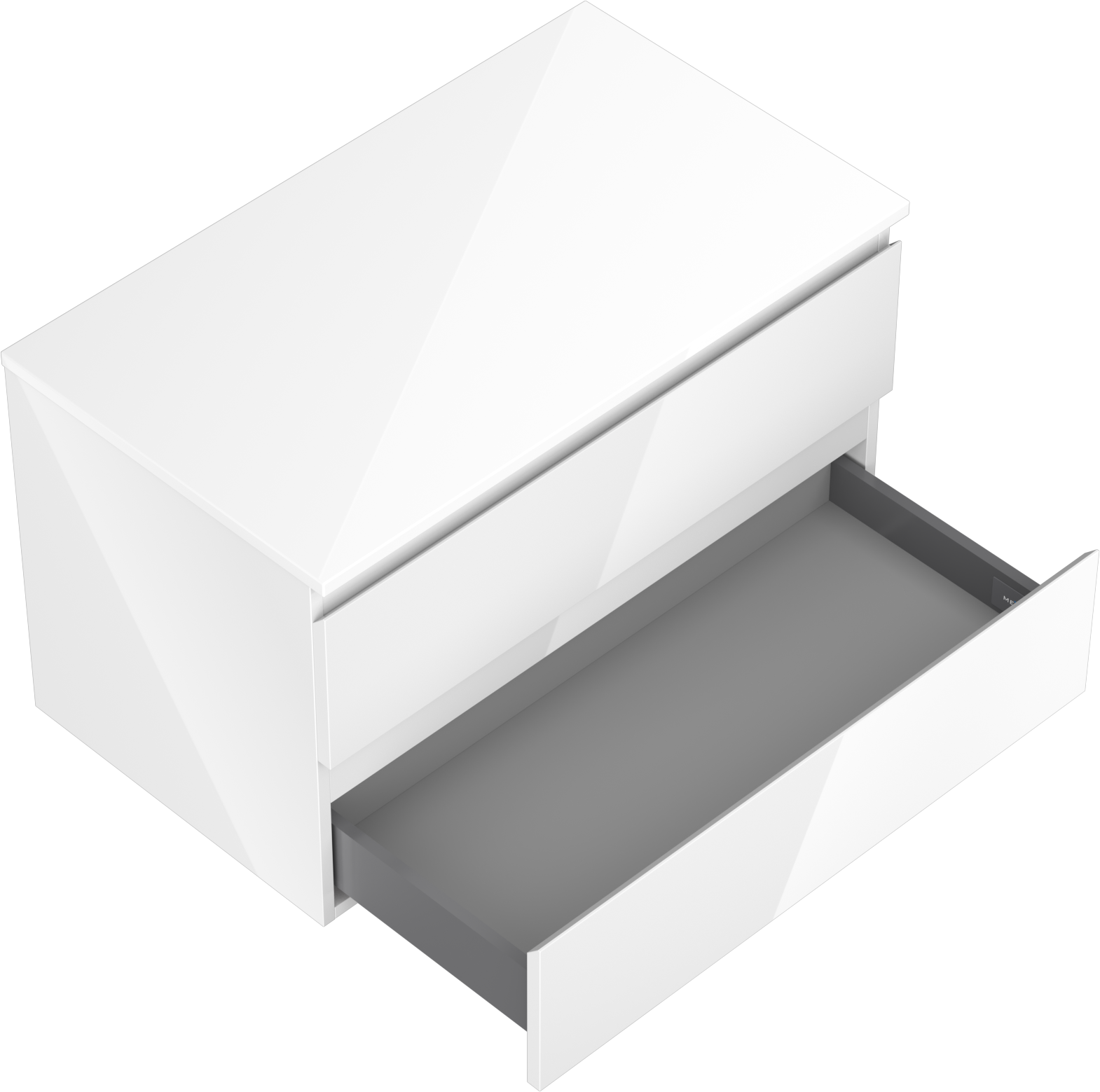 Decupajul în sertar este proiectat în așa fel încât să acomodeze sifonul, care este esențial în instalațiile de lavoare. Datorită acestui fapt, mobila poate fi montată complet funcțională, fără a fi necesară renunțarea la spațiul din sertar în favoarea instalației.