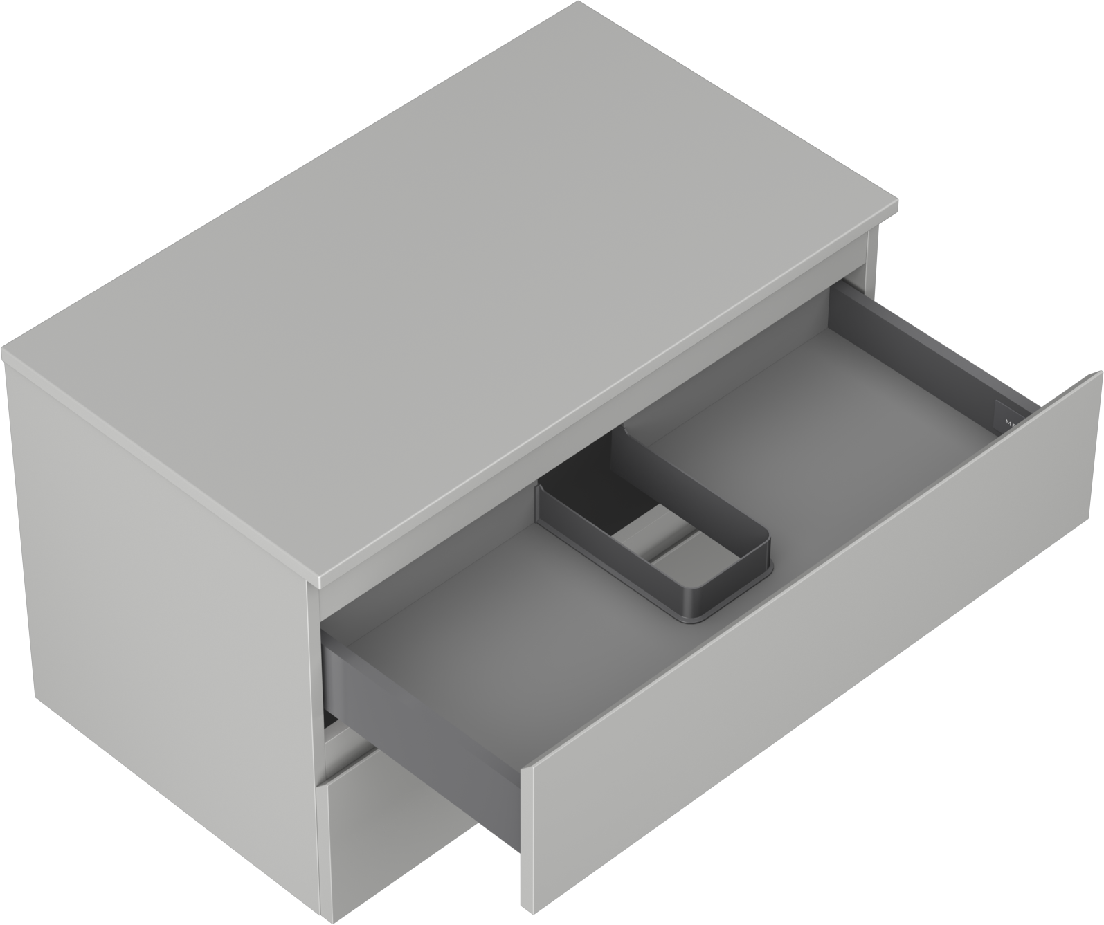 Decupajul în sertar este proiectat în așa fel încât să acomodeze sifonul, care este esențial în instalațiile de lavoare. Datorită acestui fapt, mobila poate fi montată complet funcțională, fără a fi necesară renunțarea la spațiul din sertar în favoarea instalației.