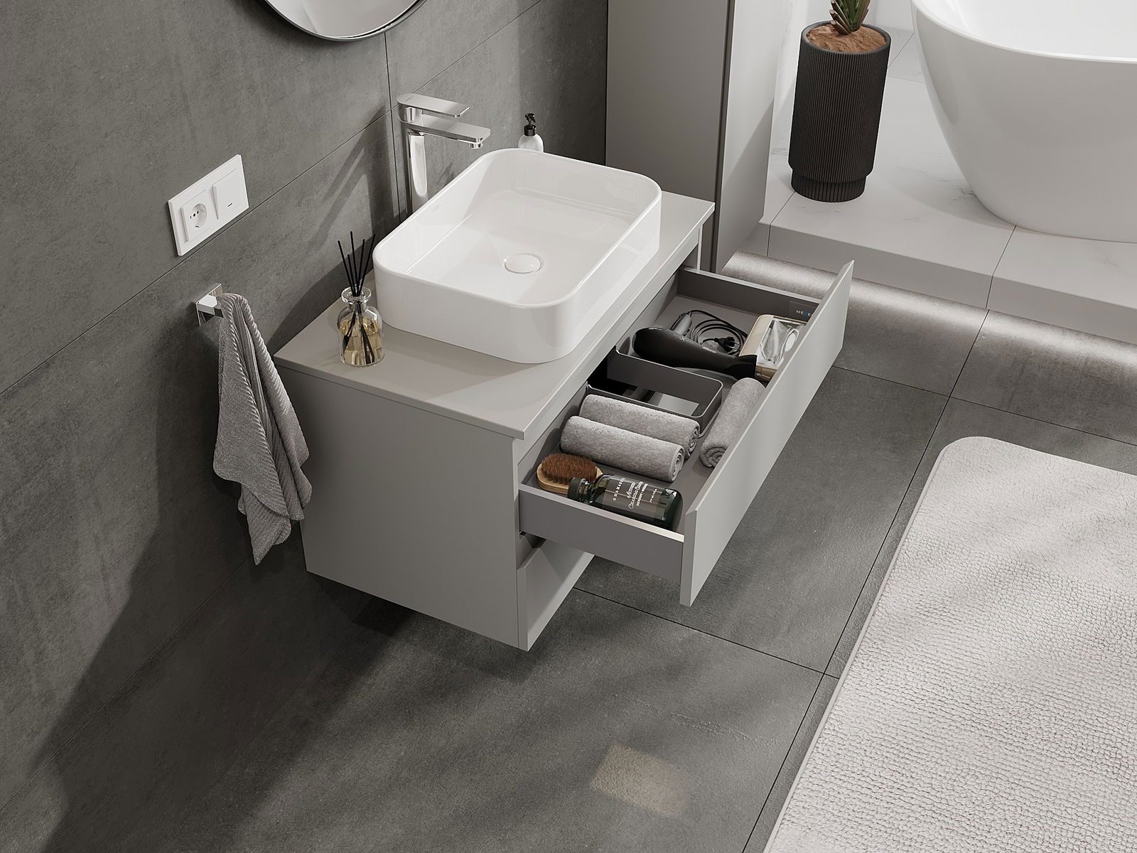 Mobilierul nostru modular pentru baie poate fi combinat în diverse configurații de culori, permițând personalizarea completă. Puteți alege atât aspectul, cât și funcțiile fiecărui element, ceea ce permite adaptarea mobilierului la preferințele dvs. stilistice și funcționale.