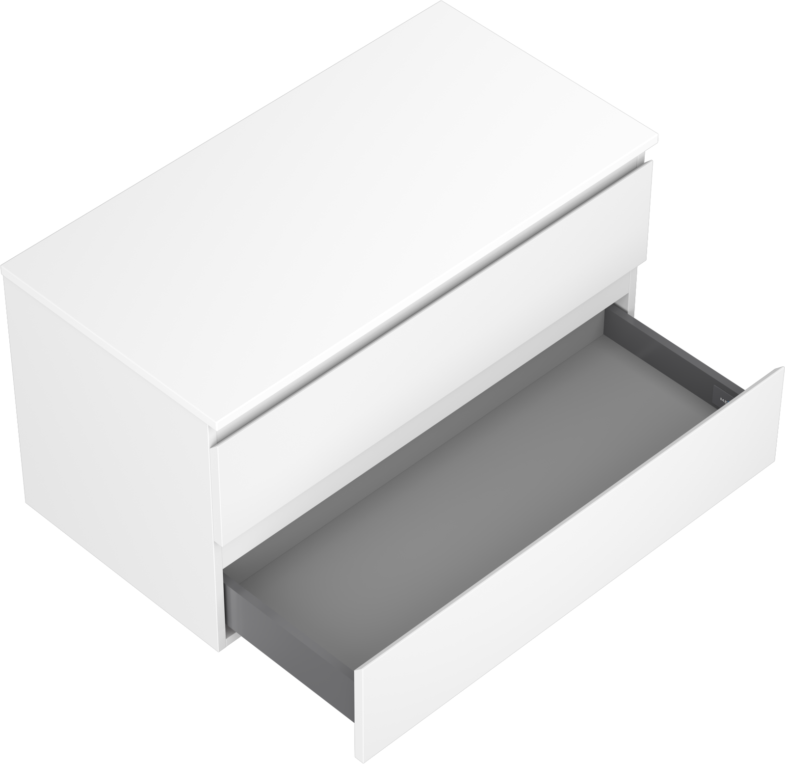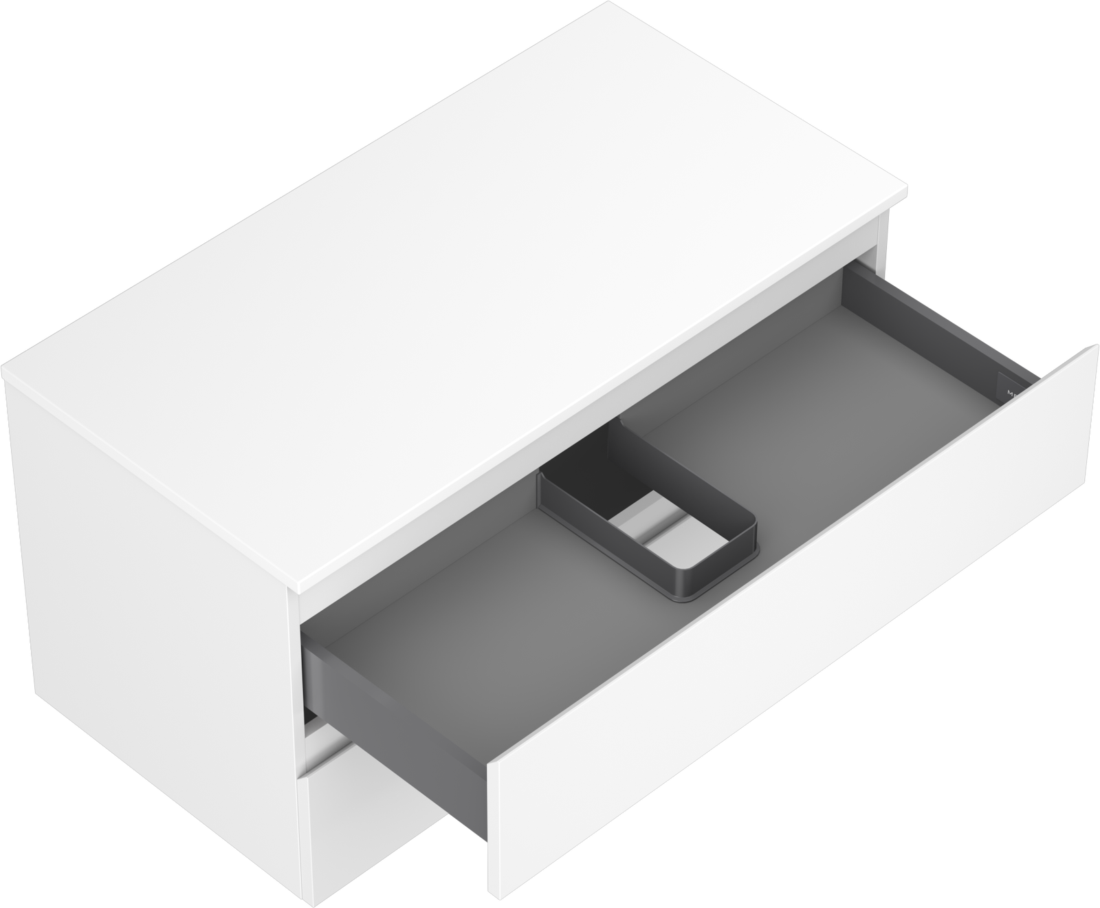 Decupajul în sertar este proiectat în așa fel încât să acomodeze sifonul, care este esențial în instalațiile de lavoare. Datorită acestui fapt, mobila poate fi montată complet funcțională, fără a fi necesară renunțarea la spațiul din sertar în favoarea instalației.