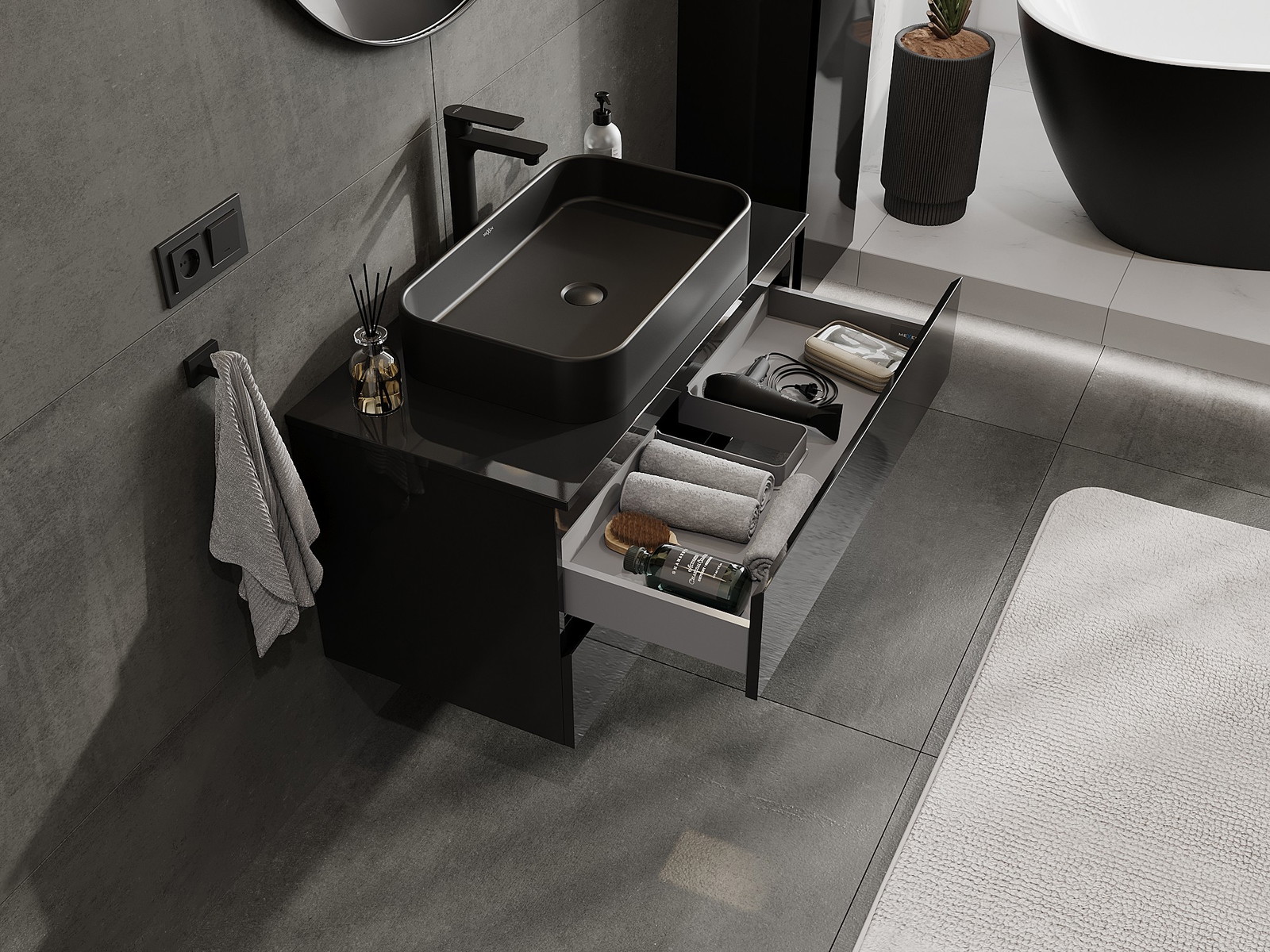 Mobilierul nostru modular pentru baie poate fi combinat în diverse configurații de culori, permițând personalizarea completă. Puteți alege atât aspectul, cât și funcțiile fiecărui element, ceea ce permite adaptarea mobilierului la preferințele dvs. stilistice și funcționale.