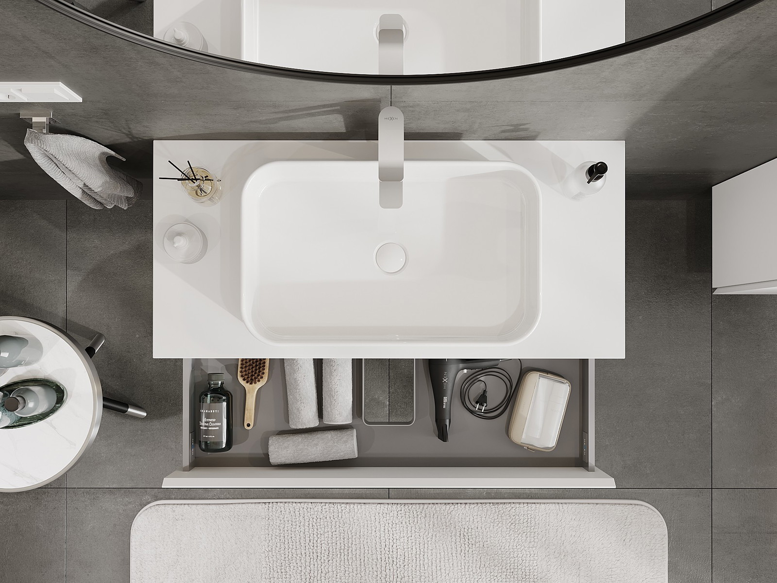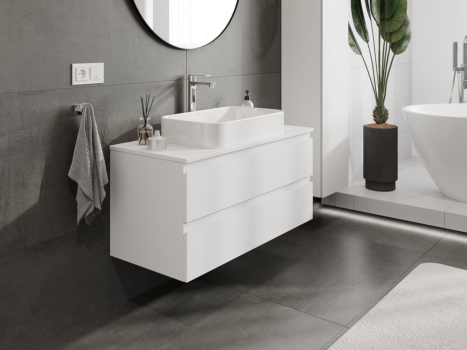 Mobilierul nostru modular pentru baie poate fi combinat în diverse configurații de culori, permițând personalizarea completă. Puteți alege atât aspectul, cât și funcțiile fiecărui element, ceea ce permite adaptarea mobilierului la preferințele dvs. stilistice și funcționale.