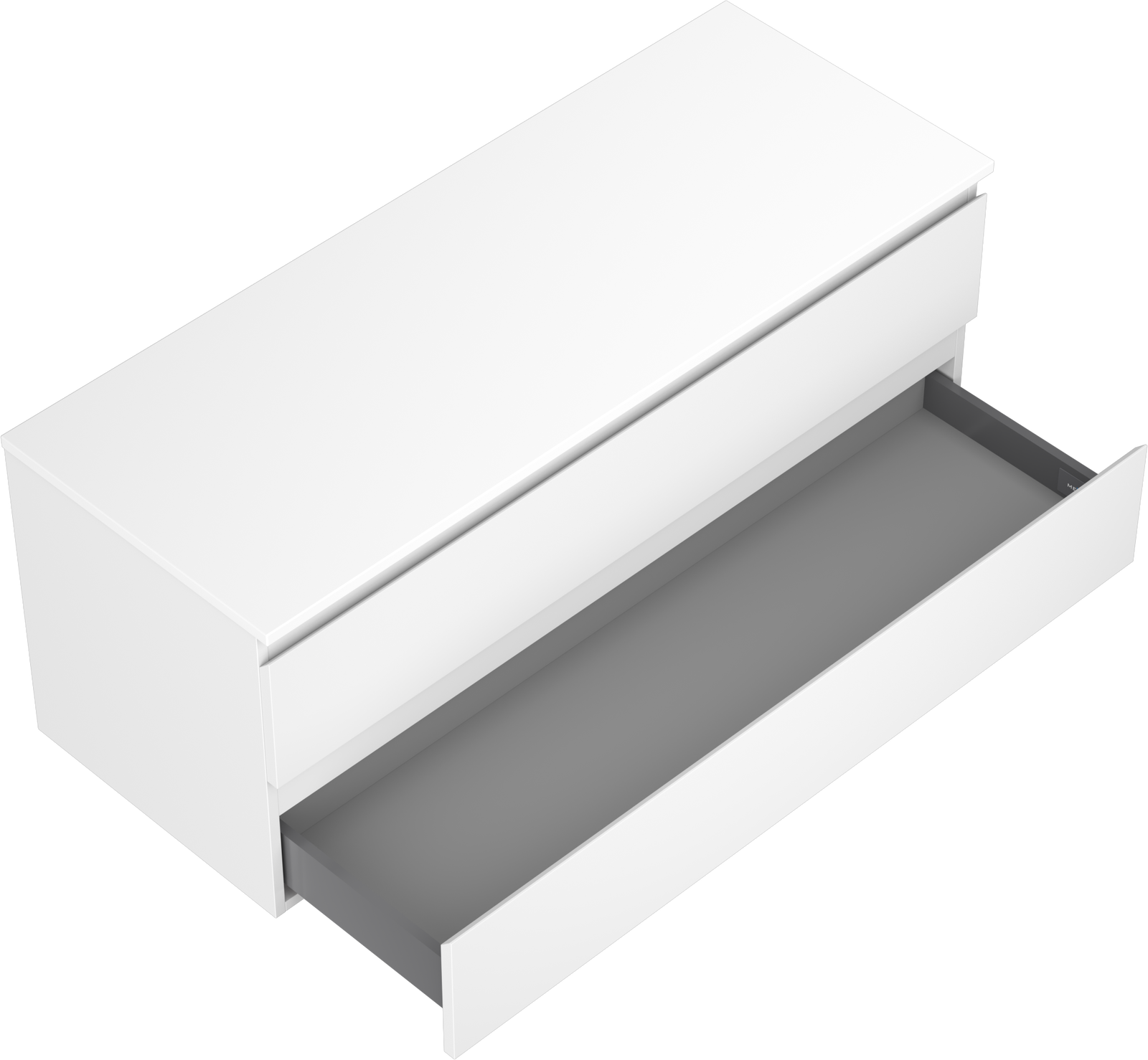 Decupajul în sertar este proiectat în așa fel încât să acomodeze sifonul, care este esențial în instalațiile de lavoare. Datorită acestui fapt, mobila poate fi montată complet funcțională, fără a fi necesară renunțarea la spațiul din sertar în favoarea instalației.