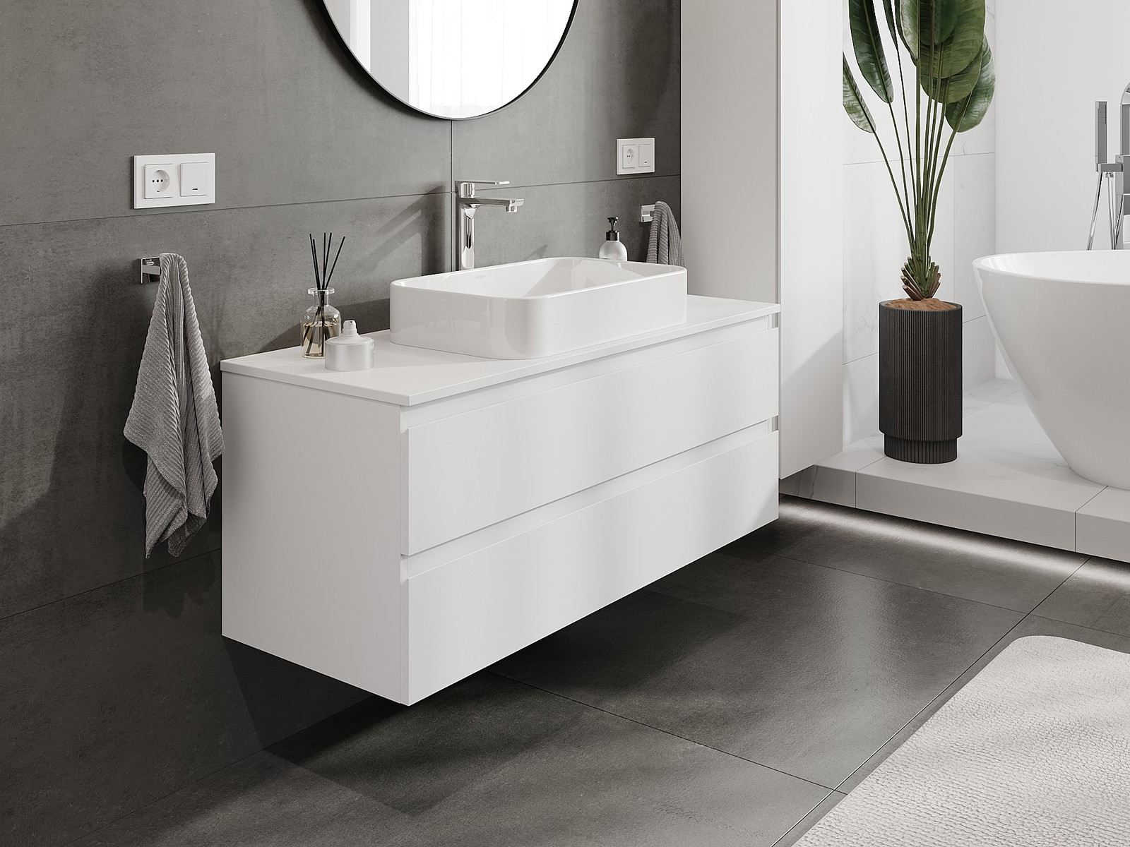 Mobilierul nostru modular pentru baie poate fi combinat în diverse configurații de culori, permițând personalizarea completă. Puteți alege atât aspectul, cât și funcțiile fiecărui element, ceea ce permite adaptarea mobilierului la preferințele dvs. stilistice și funcționale.
