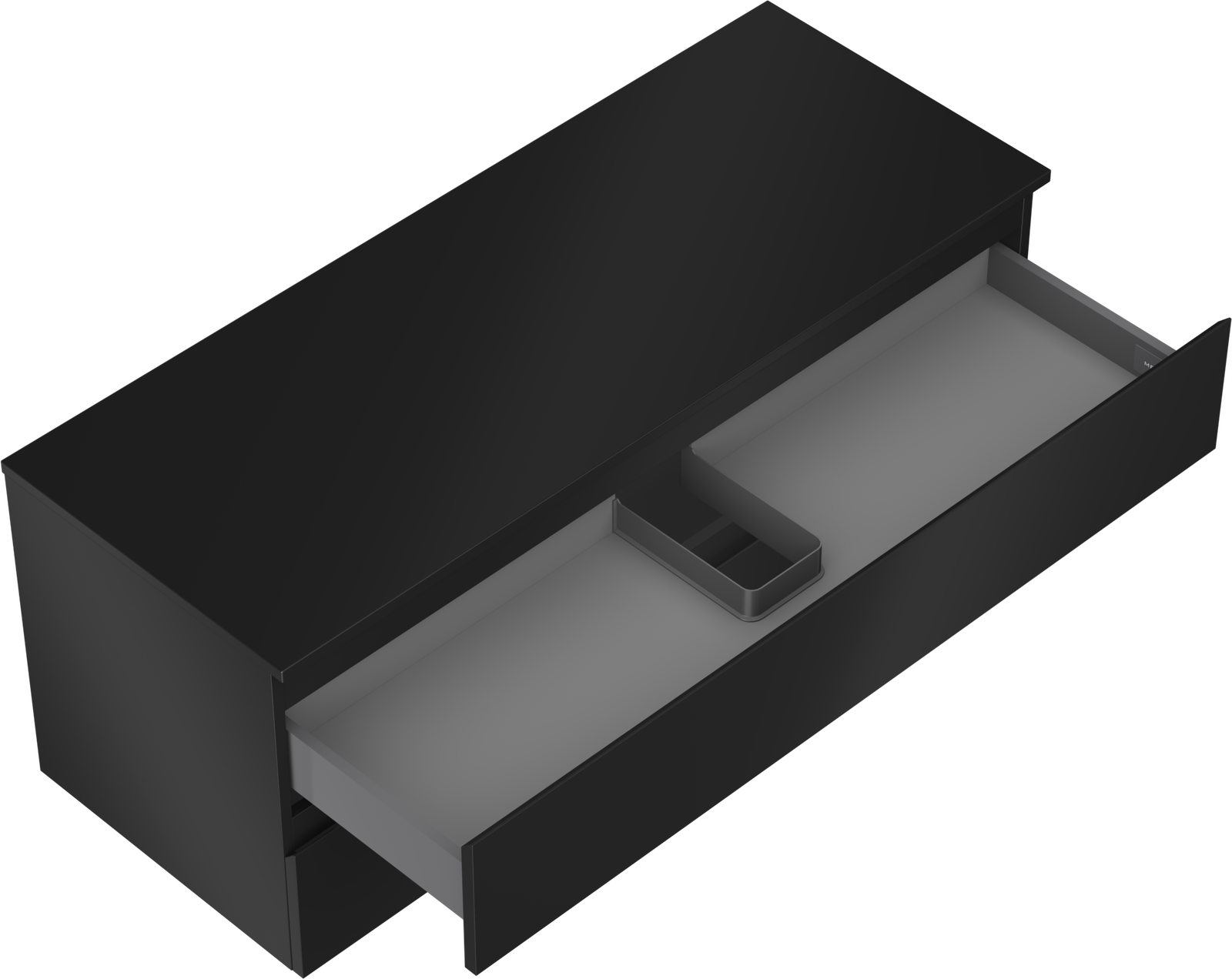 Decupajul în sertar este proiectat în așa fel încât să acomodeze sifonul, care este esențial în instalațiile de lavoare. Datorită acestui fapt, mobila poate fi montată complet funcțională, fără a fi necesară renunțarea la spațiul din sertar în favoarea instalației.