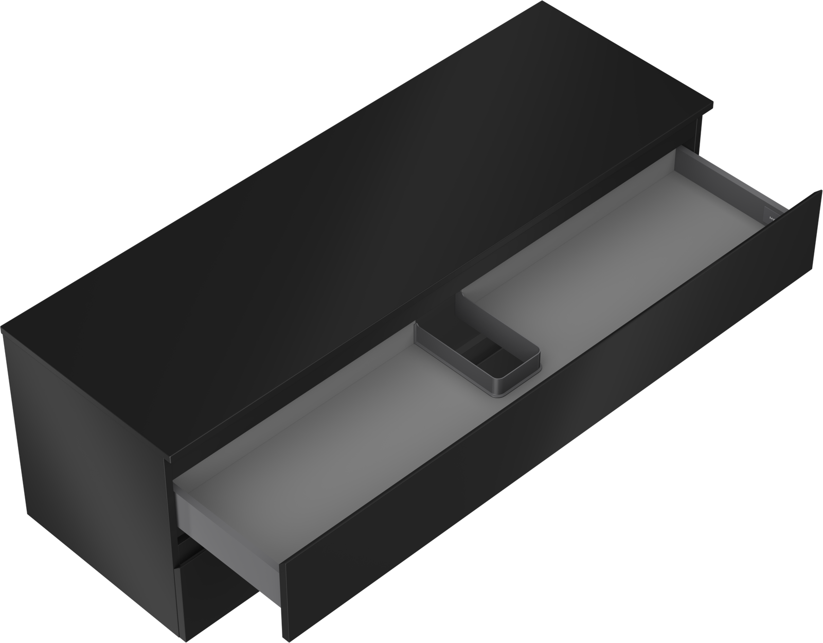 Decupajul în sertar este proiectat în așa fel încât să acomodeze sifonul, care este esențial în instalațiile de lavoare. Datorită acestui fapt, mobila poate fi montată complet funcțională, fără a fi necesară renunțarea la spațiul din sertar în favoarea instalației.
