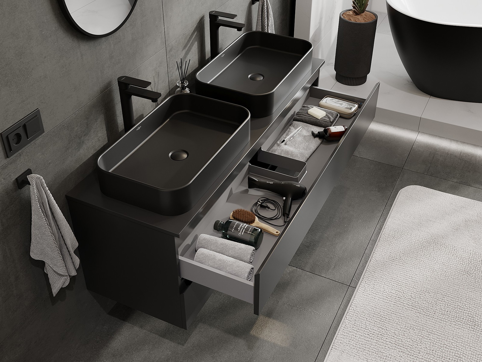 Mobilierul nostru modular pentru baie poate fi combinat în diverse configurații de culori, permițând personalizarea completă. Puteți alege atât aspectul, cât și funcțiile fiecărui element, ceea ce permite adaptarea mobilierului la preferințele dvs. stilistice și funcționale.