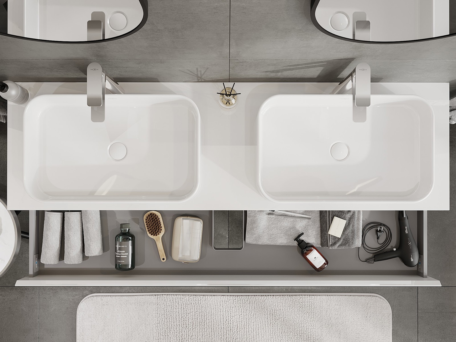 Mobilierul nostru modular pentru baie poate fi combinat în diverse configurații de culori, permițând personalizarea completă. Puteți alege atât aspectul, cât și funcțiile fiecărui element, ceea ce permite adaptarea mobilierului la preferințele dvs. stilistice și funcționale.