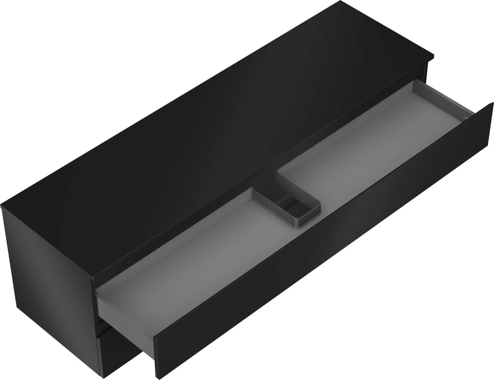 Decupajul în sertar este proiectat în așa fel încât să acomodeze sifonul, care este esențial în instalațiile de lavoare. Datorită acestui fapt, mobila poate fi montată complet funcțională, fără a fi necesară renunțarea la spațiul din sertar în favoarea instalației.