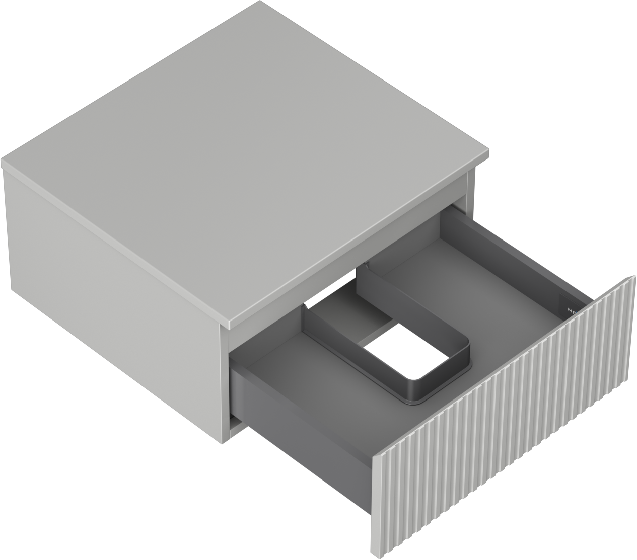 Decupajul în sertar este proiectat în așa fel încât să acomodeze sifonul, care este esențial în instalațiile de lavoare. Datorită acestui fapt, mobila poate fi montată complet funcțională, fără a fi necesară renunțarea la spațiul din sertar în favoarea instalației.