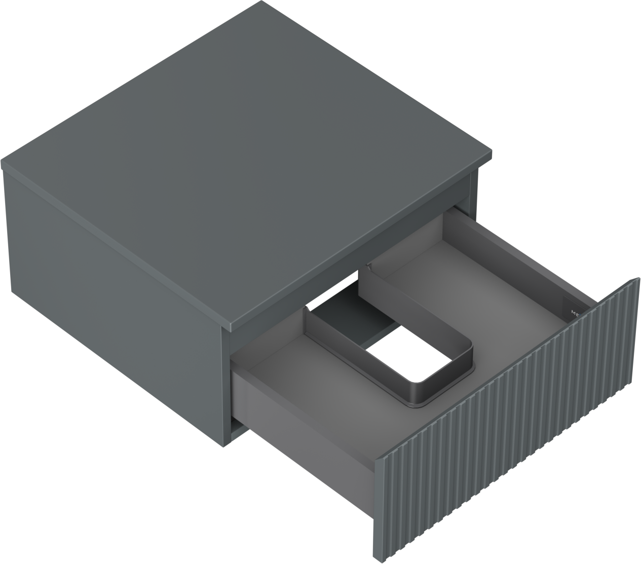 Decupajul în sertar este proiectat în așa fel încât să acomodeze sifonul, care este esențial în instalațiile de lavoare. Datorită acestui fapt, mobila poate fi montată complet funcțională, fără a fi necesară renunțarea la spațiul din sertar în favoarea instalației.
