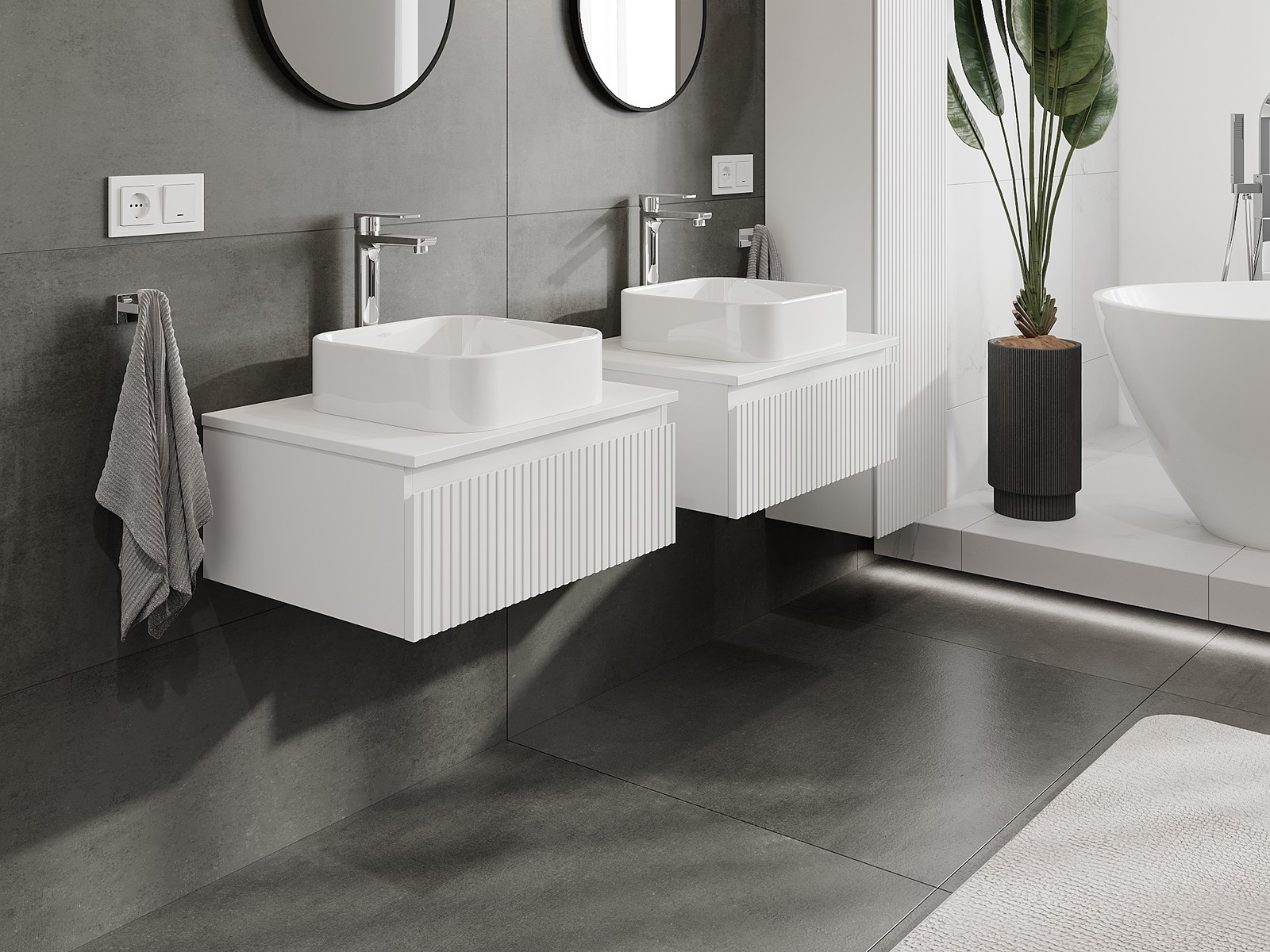 Mexen Rivel dulap baie sub lavoar 60 cm cu blat, 1 sertar, canelat, alb mat - 91A20-06023-1-BFC01