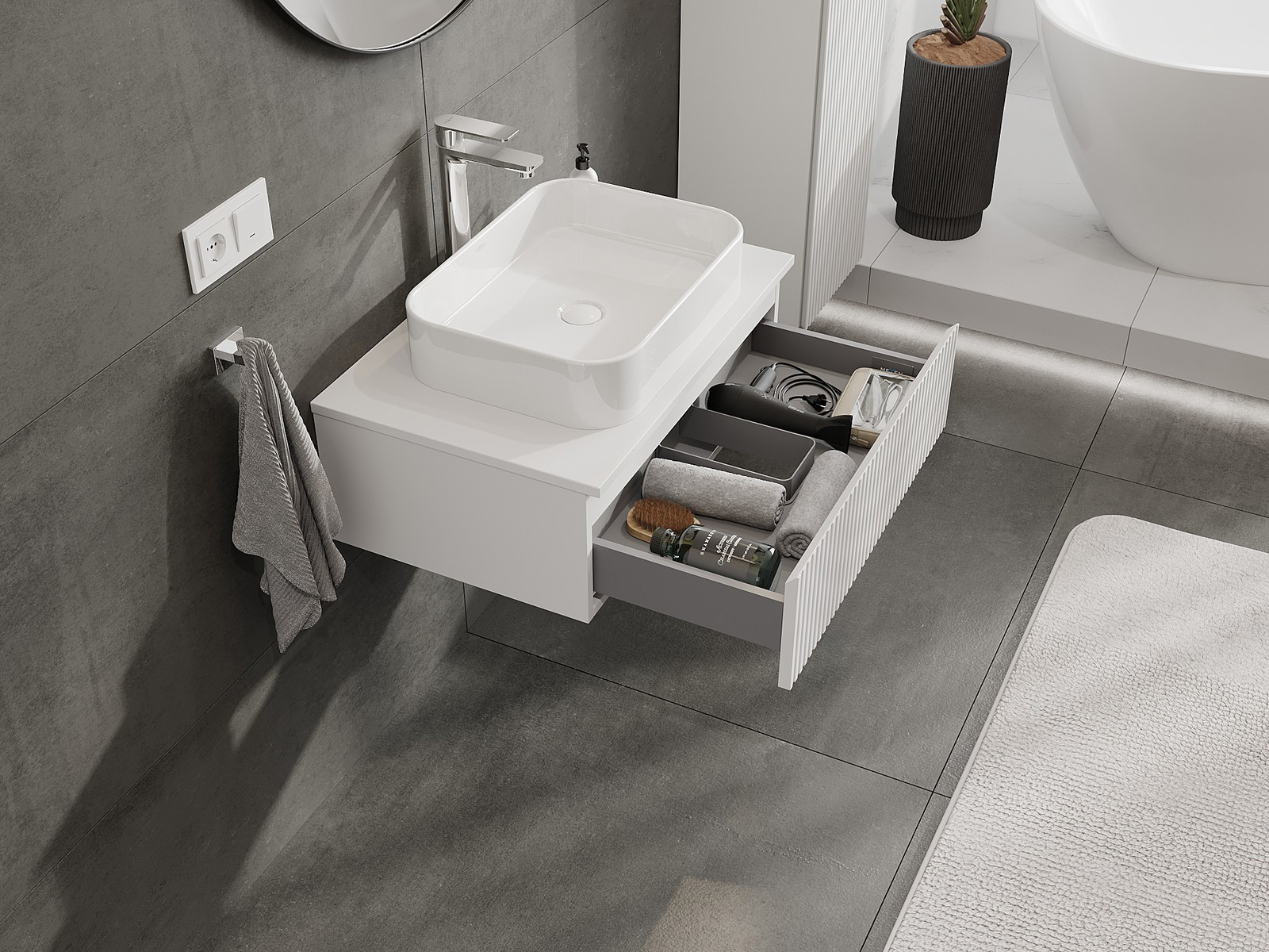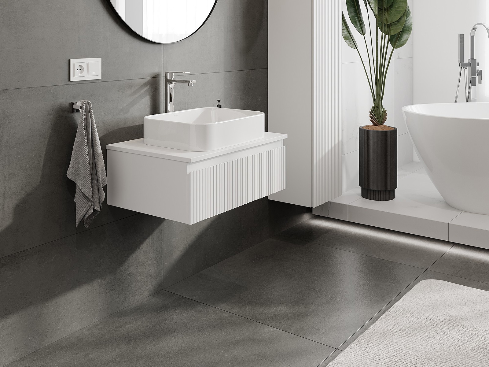 Mobilierul nostru modular pentru baie poate fi combinat în diverse configurații de culori, permițând personalizarea completă. Puteți alege atât aspectul, cât și funcțiile fiecărui element, ceea ce permite adaptarea mobilierului la preferințele dvs. stilistice și funcționale.