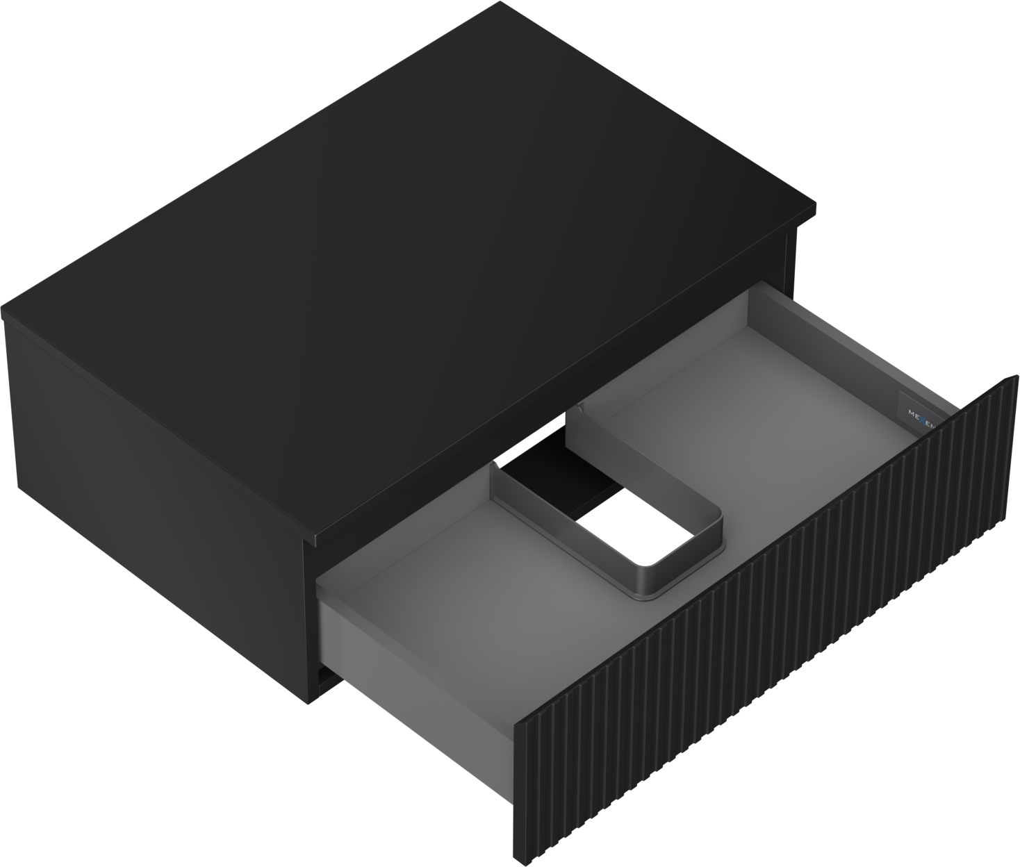 Decupajul în sertar este proiectat în așa fel încât să acomodeze sifonul, care este esențial în instalațiile de lavoare. Datorită acestui fapt, mobila poate fi montată complet funcțională, fără a fi necesară renunțarea la spațiul din sertar în favoarea instalației.