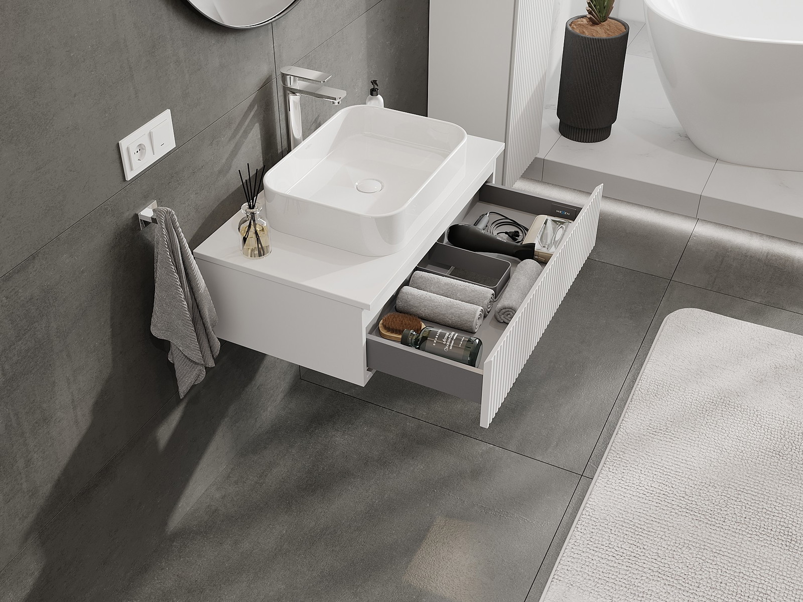 Mobilierul nostru modular pentru baie poate fi combinat în diverse configurații de culori, permițând personalizarea completă. Puteți alege atât aspectul, cât și funcțiile fiecărui element, ceea ce permite adaptarea mobilierului la preferințele dvs. stilistice și funcționale.