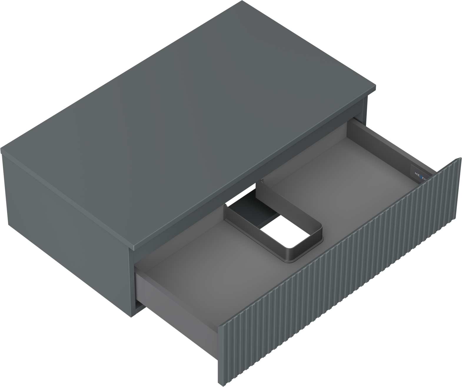 Decupajul în sertar este proiectat în așa fel încât să acomodeze sifonul, care este esențial în instalațiile de lavoare. Datorită acestui fapt, mobila poate fi montată complet funcțională, fără a fi necesară renunțarea la spațiul din sertar în favoarea instalației.