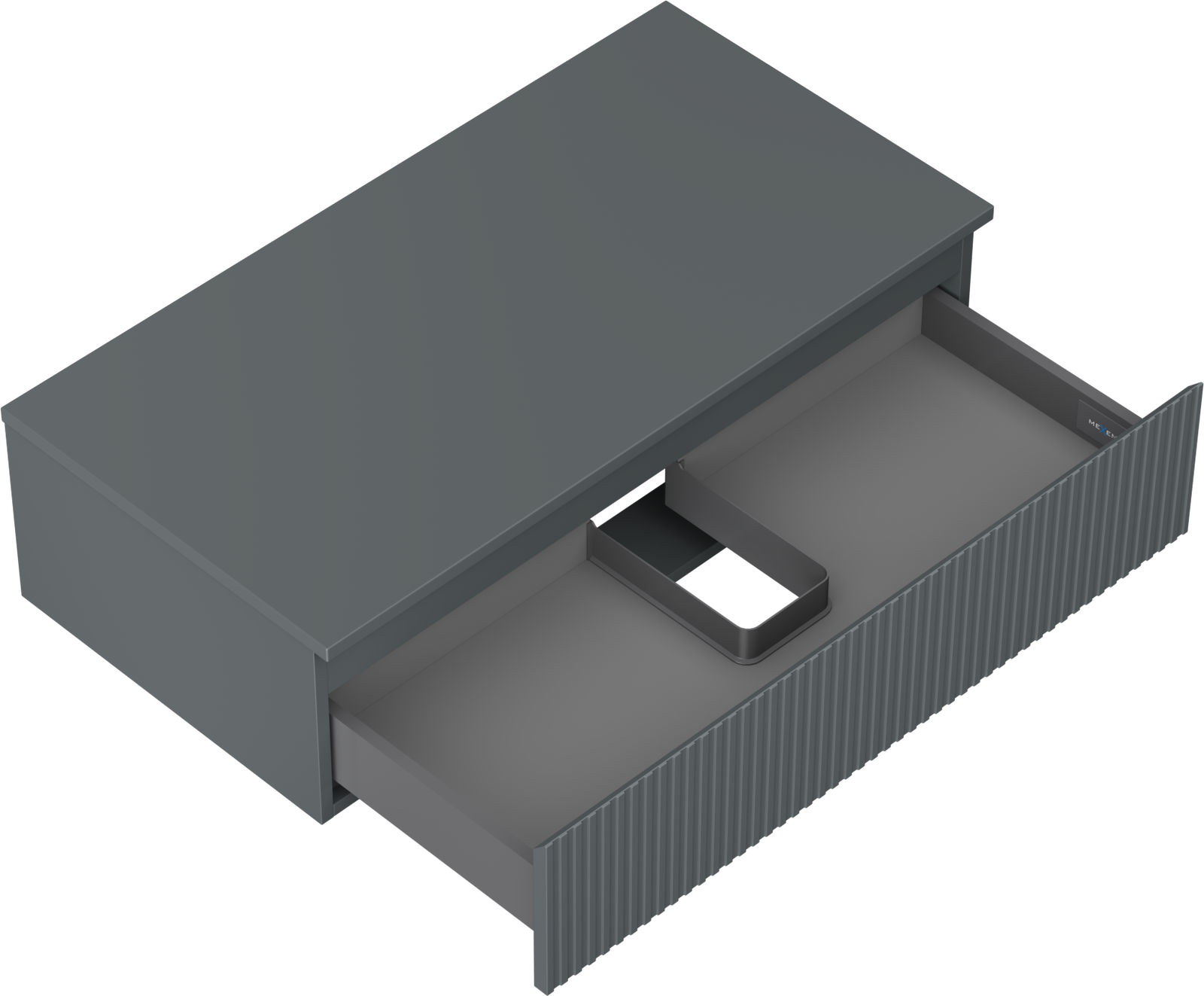 Decupajul în sertar este proiectat în așa fel încât să acomodeze sifonul, care este esențial în instalațiile de lavoare. Datorită acestui fapt, mobila poate fi montată complet funcțională, fără a fi necesară renunțarea la spațiul din sertar în favoarea instalației.