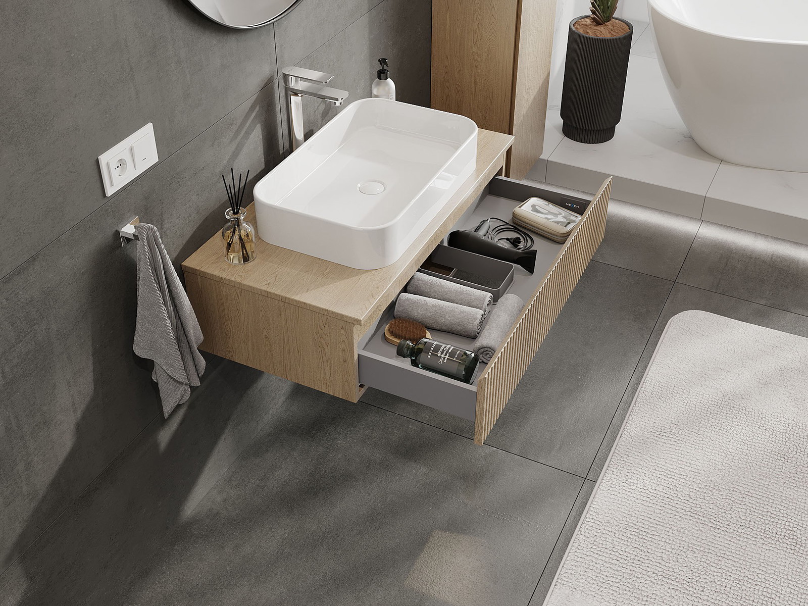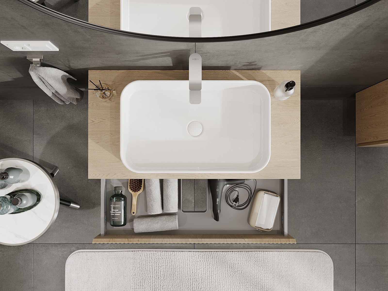 Mobilierul nostru modular pentru baie poate fi combinat în diverse configurații de culori, permițând personalizarea completă. Puteți alege atât aspectul, cât și funcțiile fiecărui element, ceea ce permite adaptarea mobilierului la preferințele dvs. stilistice și funcționale.