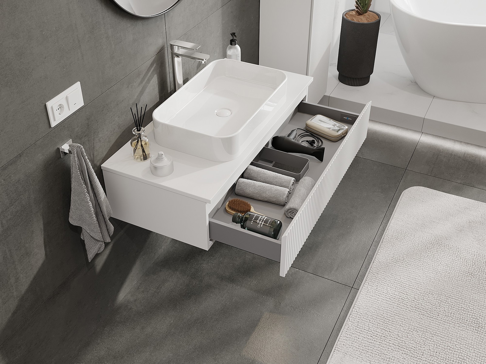 Mobilierul nostru modular pentru baie poate fi combinat în diverse configurații de culori, permițând personalizarea completă. Puteți alege atât aspectul, cât și funcțiile fiecărui element, ceea ce permite adaptarea mobilierului la preferințele dvs. stilistice și funcționale.