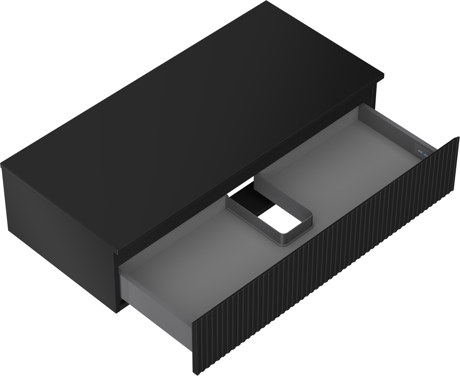 Decupajul în sertar este proiectat în așa fel încât să acomodeze sifonul, care este esențial în instalațiile de lavoare. Datorită acestui fapt, mobila poate fi montată complet funcțională, fără a fi necesară renunțarea la spațiul din sertar în favoarea instalației.