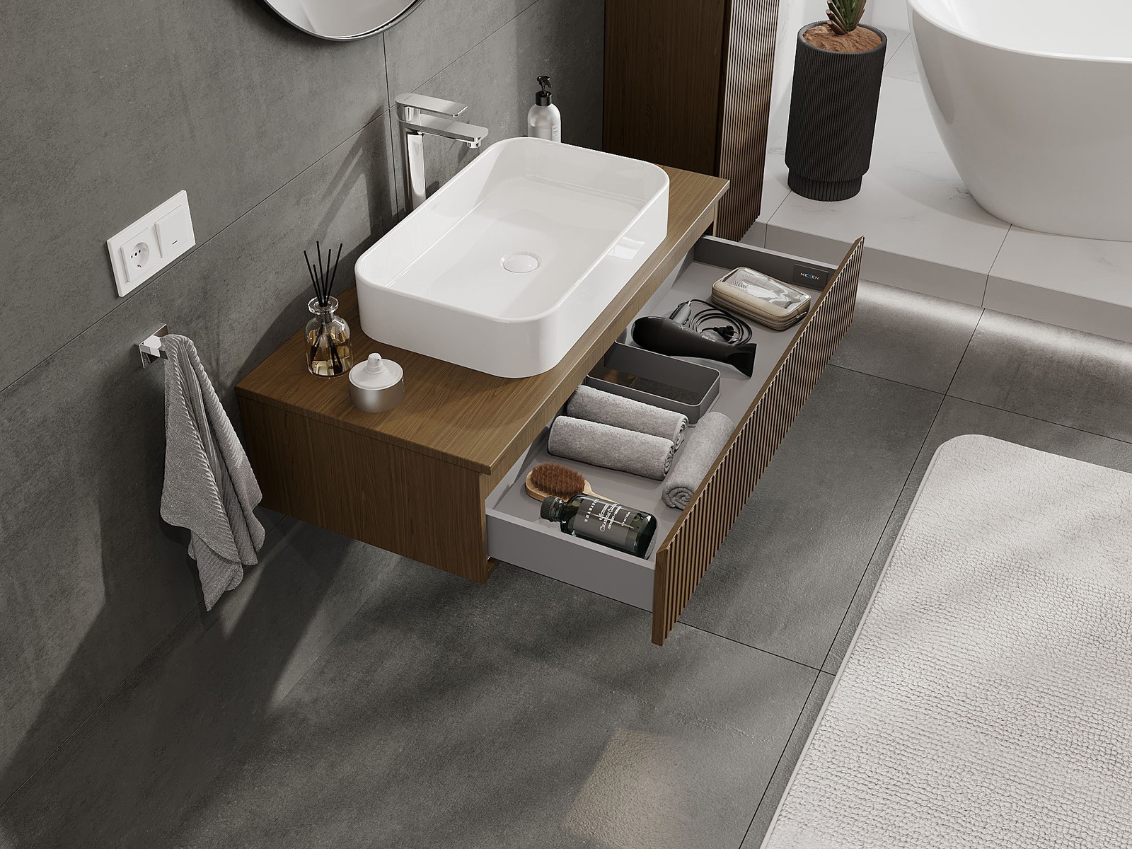 Mobilierul nostru modular pentru baie poate fi combinat în diverse configurații de culori, permițând personalizarea completă. Puteți alege atât aspectul, cât și funcțiile fiecărui element, ceea ce permite adaptarea mobilierului la preferințele dvs. stilistice și funcționale.
