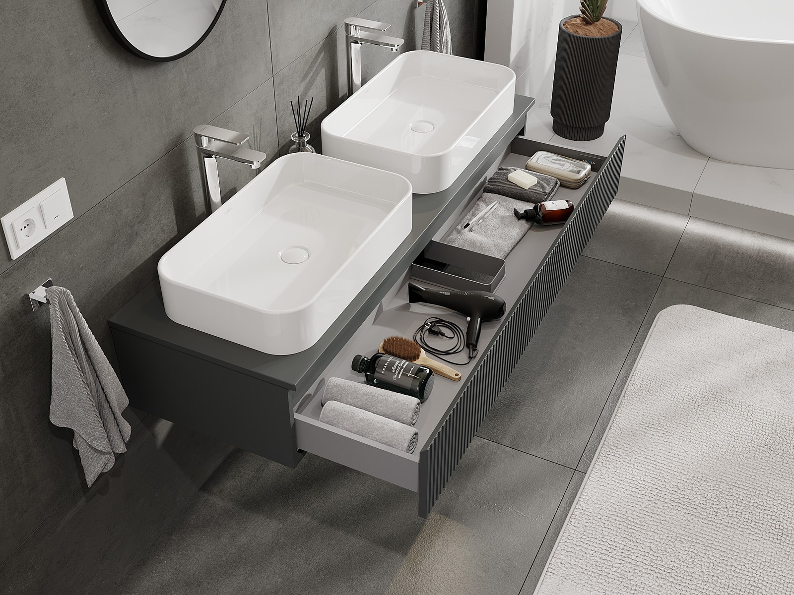 Mobilierul nostru modular pentru baie poate fi combinat în diverse configurații de culori, permițând personalizarea completă. Puteți alege atât aspectul, cât și funcțiile fiecărui element, ceea ce permite adaptarea mobilierului la preferințele dvs. stilistice și funcționale.