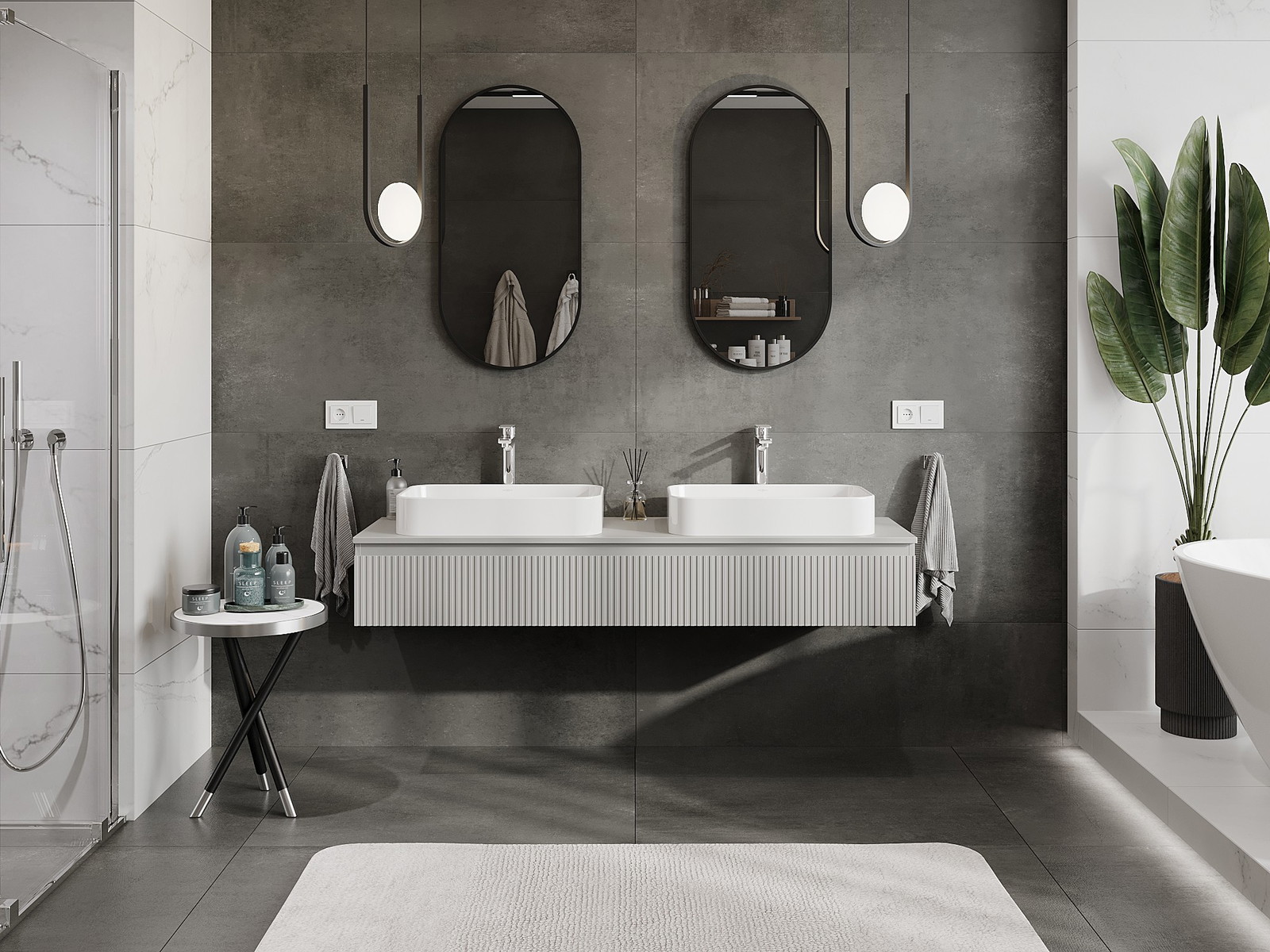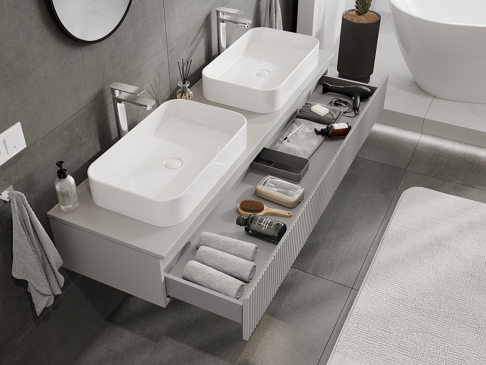 Mobilierul nostru modular pentru baie poate fi combinat în diverse configurații de culori, permițând personalizarea completă. Puteți alege atât aspectul, cât și funcțiile fiecărui element, ceea ce permite adaptarea mobilierului la preferințele dvs. stilistice și funcționale.
