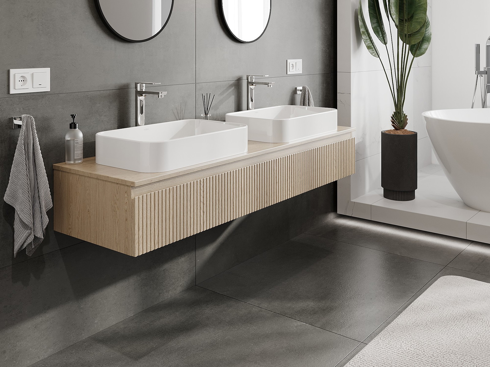 Corpul dulapului este livrat complet asamblat, ceea ce înseamnă confort maxim și economie de timp. Nu trebuie să pierzi ore întregi asamblând mobilierul – este suficient să îl montezi în locul ales din baie. Aceasta este soluția ideală pentru persoanele care prețuiesc montajul rapid și efectul imediat.