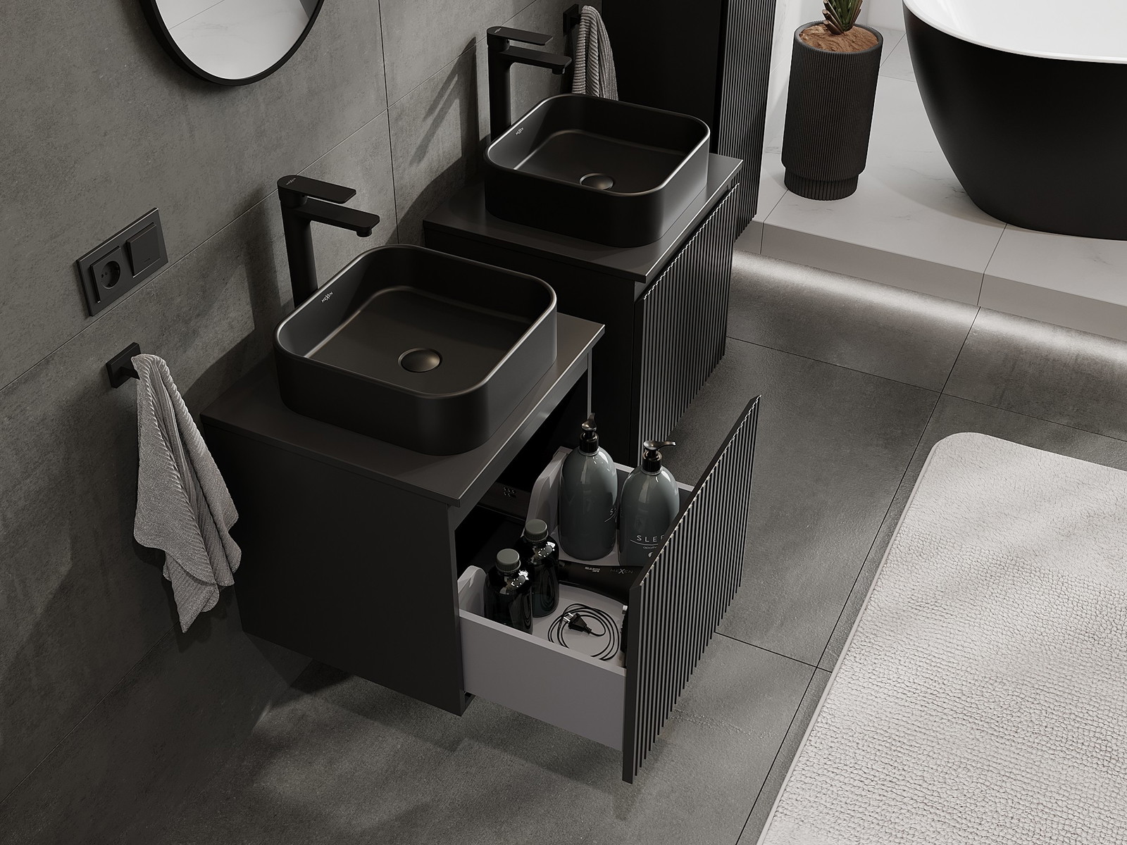 Mobilierul nostru modular pentru baie poate fi combinat în diverse configurații de culori, permițând personalizarea completă. Puteți alege atât aspectul, cât și funcțiile fiecărui element, ceea ce permite adaptarea mobilierului la preferințele dvs. stilistice și funcționale.
